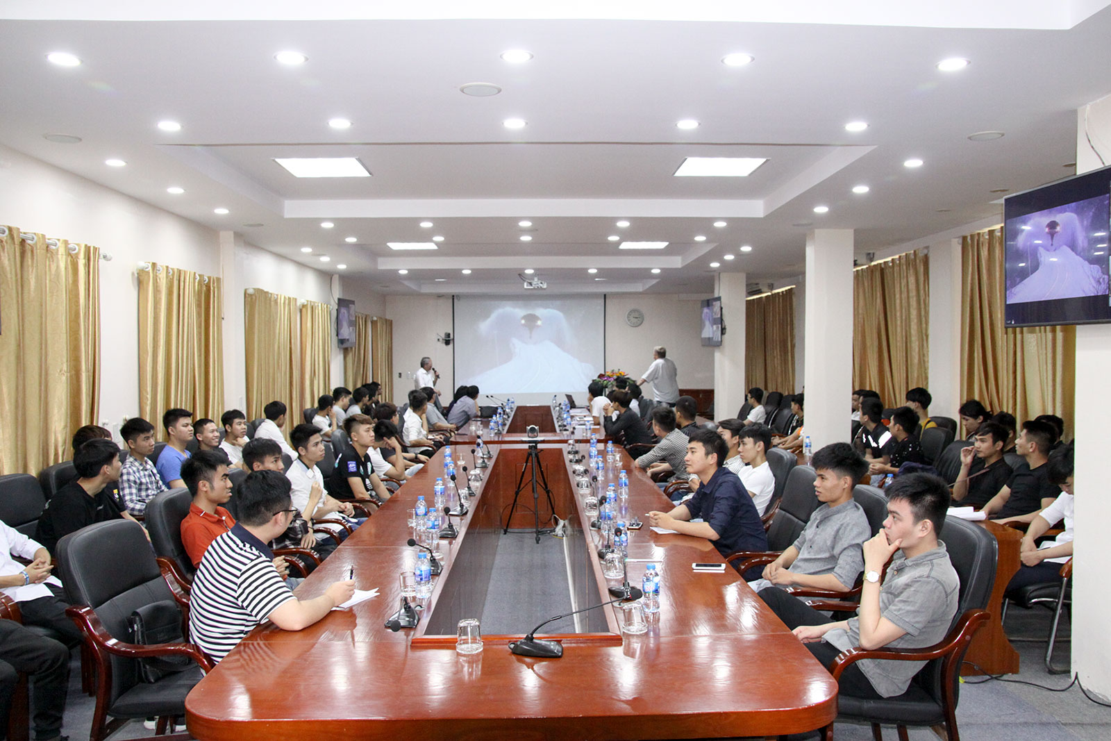 Phát biểu khai mạc Hội thảo, PGS.TS. Đào Văn Đông - Hiệu trưởng Nhà trường cho biết Hội thảo hoạt động về giới thiệu các chương trình đào tạo, giới thiệu cơ hội học tập, việc làm là một trong những nội dung Trường Đại học Công nghệ GTVT đặc biệt quan tâm. Với mục tiêu đáp ứng xu thế xã hội, định hướng cho các bạn sinh viên lựa chọn ngành nghề học tập, tìm kiếm các cơ hội việc làm trong nước, đặc biệt là cơ hội việc làm Quốc tế. PGS.TS. Đào Văn Đông tin tưởng rằng đại diện lãnh đạo hai công ty CP nguồn nhân lực Việt Nam - Thái Bình Dương và công ty Brueckner BmbH - CHLB Đức sẽ tích cực trao đổi, chia sẻ thông tin tới các bạn sinh viên về môi trường học tập, cơ hội việc làm và ngành nghề đào tạo tại Việt Nam và CHLB Đức. Cuối cùng, PGS.TS. Đào Văn Đông mong muốn lãnh đạo hai công ty sẽ tạo mọi điều kiện thuận lợi nhất cho sinh viên Nhà trường có được cơ hội tốt để học tập và làm việc trong tương lai; chúc các em sinh viên Khoa Cơ khí, đặc biệt sinh viên ngành Công nghệ kỹ thuật Cơ khí Đầu máy toa xe và tàu điện Metro có được nhiều thông tin bổ ích nhất, có quyết định cho bản thân về học tập và làm việc trong tươi lai.