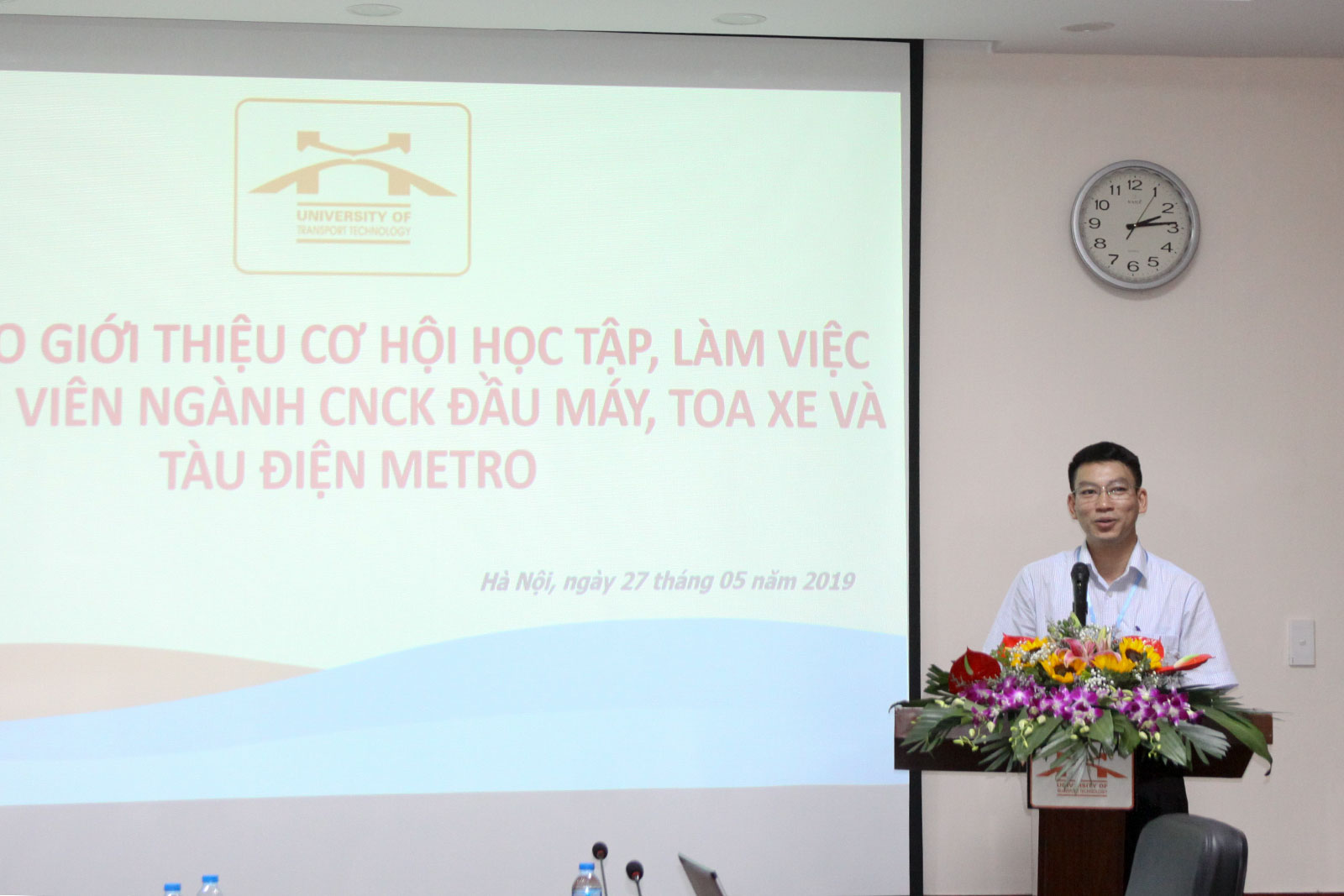 Với mục tiêu tạo điều kiện cho sinh viên tiếp cận với các cơ hội học tập và làm việc tại Cộng hòa Liên bang Đức, ngày 27/5/2019, Trường Đại học Công nghệ GTVT hợp tác với Công ty Brueckner BmbH và Công ty CP nguồn nhân lực Việt Nam - Thái Bình Dương tổ chức Hội thảo trực tuyến giới thiệu cơ hội học tập và việc làm cho sinh viên ngành Công nghệ kỹ thuật Cơ khí Đầu máy toa xe và tàu điện Metro tại CSĐT Hà Nội và CSĐT Vĩnh Phúc.