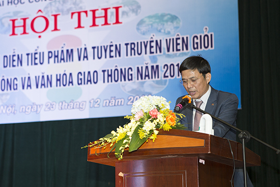 Phát biểu Khai mạc hội thi, Chủ tịch công đoàn nhà trường Trần Văn Bình nêu rõ: “Tai nạn giao thông đã và đang trở thành hiểm họa, hằng ngày, hằng giờ cướp đi sinh mạng của nhiều người, hủy hoại sức khỏe, phá hoại hạnh phúc gia đình, gây thêm gánh nặng cho toàn xã hội. Những vụ tai nạn giao thông nghiêm trọng hiện nay chủ yếu do các loại xe khách, xe tải nặng, xe container... gây ra. Các phương tiện này thường không bảo đảm tiêu chuẩn an toàn kỹ thuật, không đăng ký, đăng kiểm, thiếu các dụng cụ cứu sinh. Nguy hại hơn là tình trạng lái xe không làm chủ tốc độ, phóng nhanh, vượt ẩu, tranh giành khách, gây mất trật tự ATGT... Trước tình hình trên, thực hiện Đề án tuyên truyền về ATGT và VHGT giai đoạn 2013-2015, thời gian qua, trường Đại học Công nghệ GTVT đã triển khai công tác tuyên truyền với nhiều nội dung, hình thức phong phú, từ đó tạo ra phong trào tuyên truyền rộng khắp, huy động được sức mạnh tổng hợp của các đoàn thể nhà trường. Qua đó, góp phần kiềm chế, làm giảm tai nạn giao thông trong cả nước.