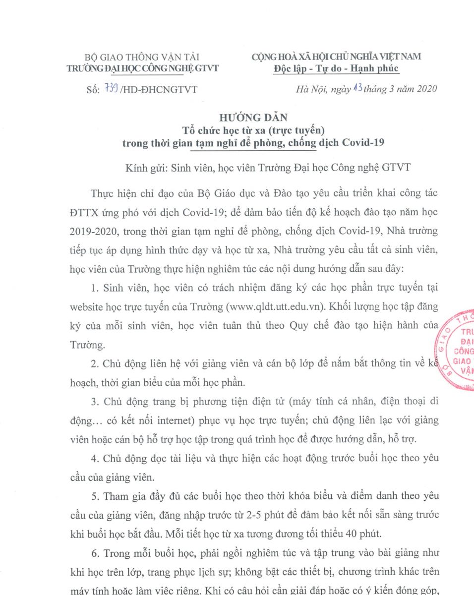 Hướng dẫn sinh viên, học viên học trực tuyến trong thời gian tạm nghỉ để phòng, chống dịch Covid- 19 13/03/2020 09:03