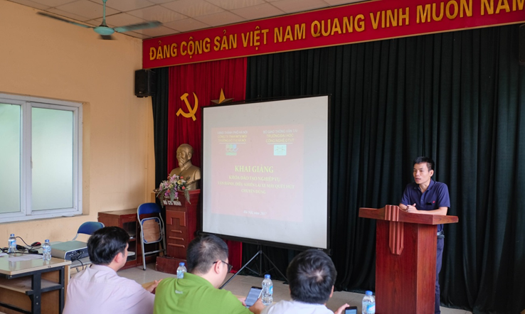 Ông Dương Văn Đoan – Phó trưởng khoa Đào tạo tại chức, trường Đại học Công nghệ GTVT công bố Quyết định thành lập lớp và phát biểu tại lễ khai giảng