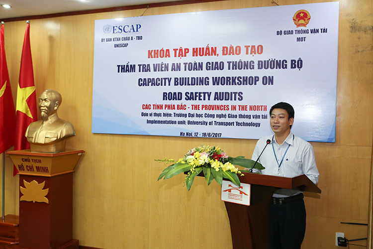 Triển khai chương trình hợp tác giữa Bộ GTVT với Ủy ban Kinh tế xã hội Châu Á - Thái Bình Dương của Liên hợp Quốc (UNESCAP) về việc tiếp tục triển khai dự án tăng cường năng lực quản lý an toàn giao thông đường bộ quốc gia của các nước đang phát triển trong đó có tổ chức đào tạo, bồi dưỡng nghiệp vụ về thẩm tra viên ATGT đường bộ. Ngày 12/6/2017, được sự đồng ý của Bộ GTVT và Tổng Cục đường bộ Việt Nam, Trường Đại học Công nghệ Giao thông vận tải tổ chức Lễ khai giảng Khóa tập huấn đào tạo thẩm tra viên ATGT đường bộ đợt 1 khu vực phía Bắc.