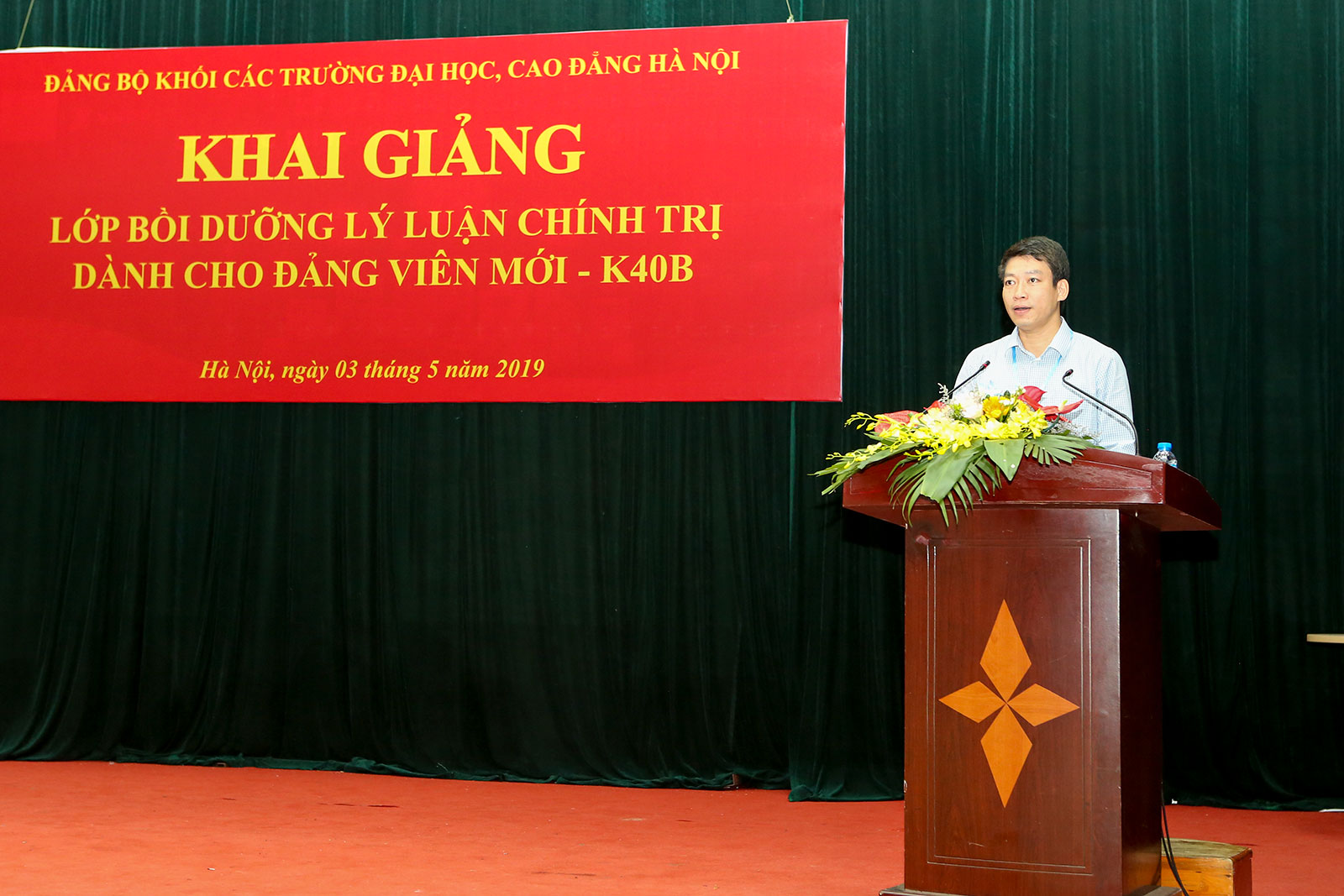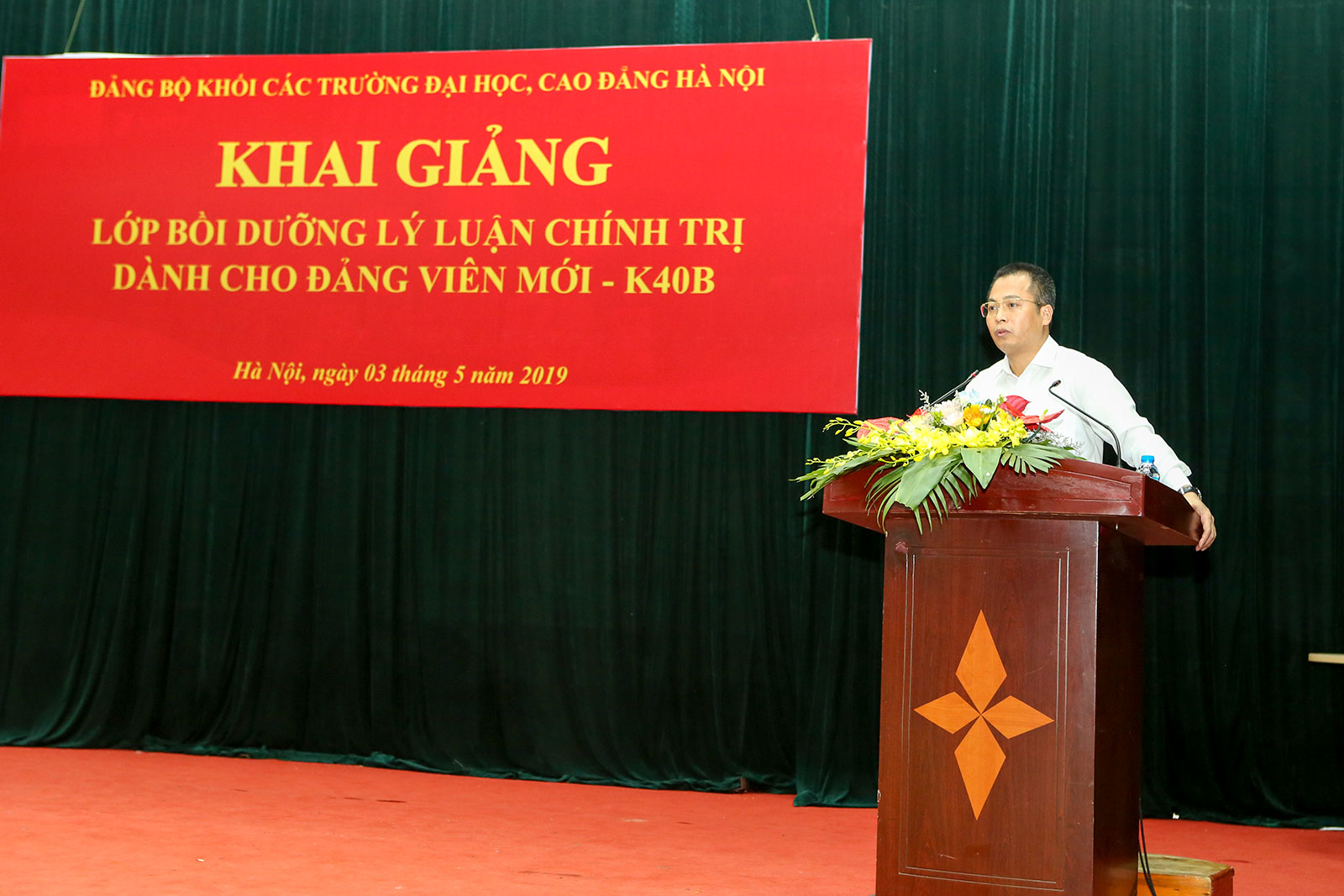 Phát biểu khai mạc, đồng chí Phạm Văn Hải - Ủy viên Ban Thường vụ, Trưởng ban Tuyên giáo Đảng ủy Khối các trường Đại học, Cao đẳng Hà Nội khẳng định Đảng bộ Khối luôn quan tâm tới hoạt động bồi dưỡng, nâng cao bản lĩnh chính trị, phẩm chất đạo đức cách mạng và trình độ trí tuệ cho đội ngũ Đảng viên mới. Đồng thời, đồng chí Phạm Văn Hải yêu cầu các đảng viên mới luôn phát huy tinh thần tự học hỏi, tự nâng cao bản lĩnh chính trị cũng như nghiệp vụ chuyên môn, thực hiện tốt những nhiệm vụ được giao, góp phần xây dựng các tổ chức Đảng nơi mình công tác, học tập trở thành những tổ chức Đảng trong sạch, vững mạnh.