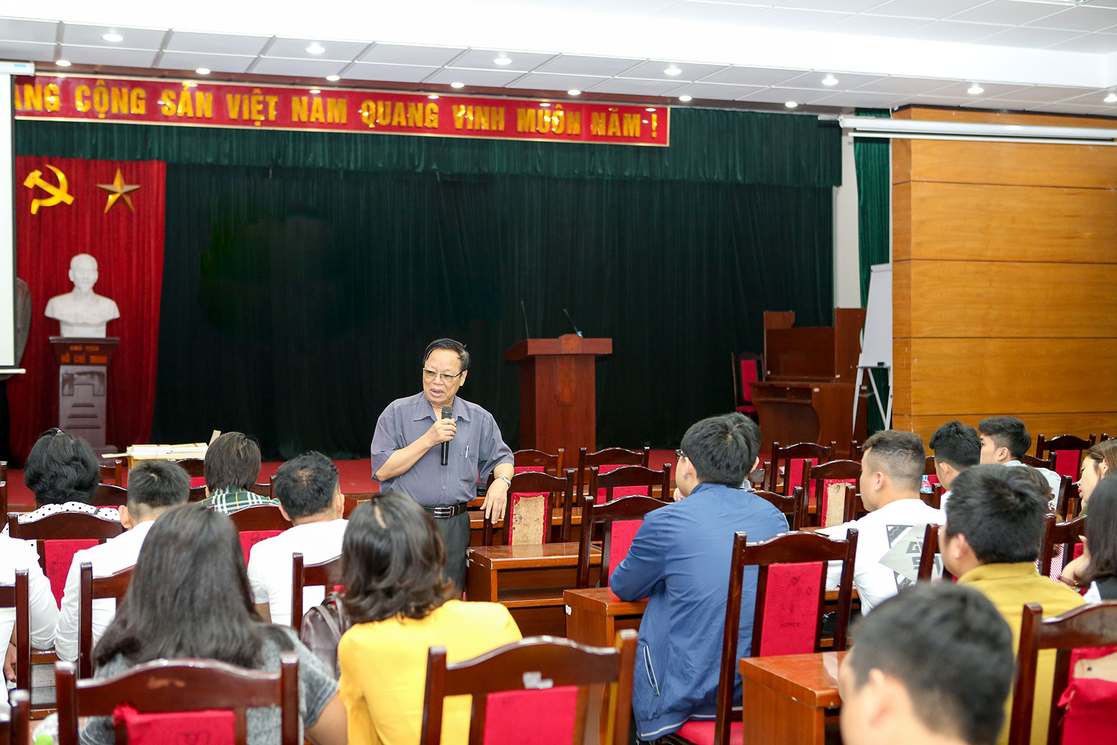Đến dự khai giảng, về phía Đảng ủy Khối các trường Đại học, Cao đẳng Hà Nội có đồng chí Phạm Văn Hải - Ủy viên Ban Thường vụ, Trưởng ban Tuyên giáo Đảng ủy Khối; về phía Đảng bộ Trường Đại học Công nghệ GTVT có đồng chí Đào Văn Đông - Ủy viên BCH Đảng ủy Khối, Bí thư Đảng ủy, Hiệu trưởng; đồng chí Nguyễn Mạnh Hùng - Ủy viên BTV, Chủ tịch Hội đồng Trường; đồng chí Dương Thị Ngọc Thu - Ủy viên BCH, Trưởng phòng TCCB; về phía Báo cáo viên có đồng chí Nguyễn Chí Mỳ - nguyên Ủy viên BTV Thành ủy, nguyên Trưởng Ban Tuyên giáo Thành ủy Hà Nội, Báo cáo viên Trung ương; dự khai giảng còn có các đồng chí là cán bộ, chuyên viên Đảng ủy Khối, đại diện các Phòng, Khoa, Trung tâm trong Nhà trường và 104 học viên là những đảng viên mới được tham dự lớp bồi dưỡng lý luận chính trị dành cho đảng viên mới K40B.