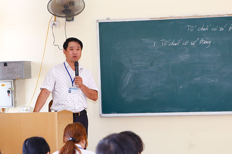Báo cáo viên Trần Văn Bình - Chủ tịch Công đoàn Trường báo cáo tại lớp học bồi dưỡng kết nạp Đảng
