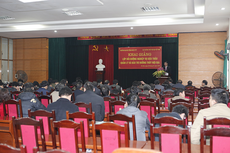 Thực hiện chủ trương hợp tác đã được thỏa thuận giữa Trường Đại học Công nghệ Giao thông vận tải và Cục Đường thủy nội địa Việt Nam về lĩnh vực nghiên cứu khoa học ứng dụng với thực tiễn sản xuất và đào tạo, bồi dưỡng nâng cao trình độ chuyên môn nghiệp vụ cho đội ngũ cán bộ quản lý nhằm đáp ứng yêu cầu thực tiễn công tác. Trường Đại học Công nghệ GTVT đã tổ chức lễ khai giảng lớp bồi dưỡng nghiệp vụ đấu thầu, quản lý và bảo trì đường thủy nội địa cho cán bộ quản lý của Cục đường thủy nội địa Việt Nam.
