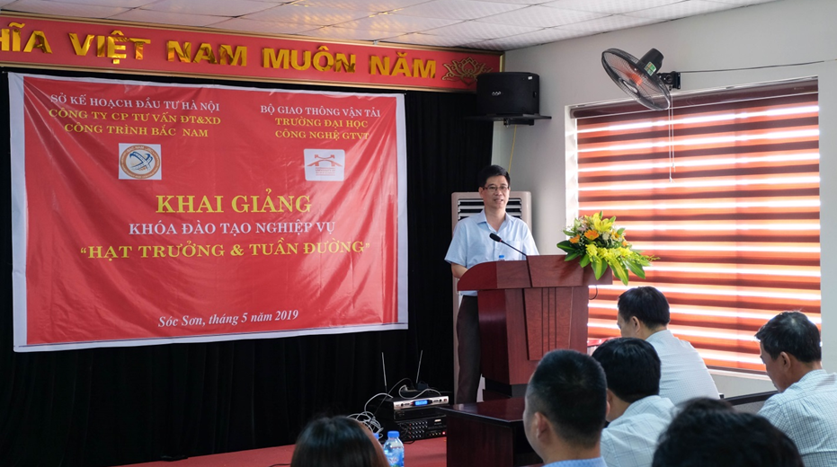 Ngày 24/05/2019, tại Sóc Sơn, Trường Đại học Công nghệ GTVT phối hợp với Công ty CP Tư vấn ĐT&XD công trình Bắc Nam tổ chức khai giảng khóa đào tạo bồi dưỡng nghiệp vụ Hạt trưởng &Tuần đường trong quản lý, khai thác đường bộ cho cán bộ, nhân viên của Công ty.