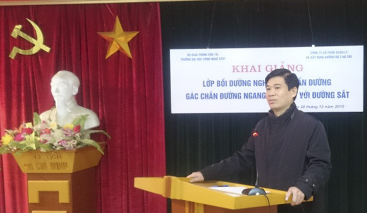 Thực hiện hợp đồng đào tạo đã ký kết với Công ty cổ phần Quản lý và Xây dựng công trình giao thông I Hà Tây, sáng ngày 30/12/2015 trường Đại học Công nghệ Giao thông vận tải đã tổ chức lễ khai giảng 2 lớp đào tạo ngắn hạn: Bồi dưỡng nghiệp vụ tuần đường và lớp bồi dưỡng nghiệp vụ gác chắn đường ngang giao cắt với đường sắt.