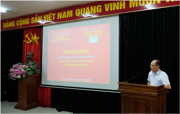 Tham gia khóa khọc, các học viên sẽ được trang bị kiến thức cơ bản về kỹ thuật công nghệ duy trì vệ sinh môi trường; an toàn lao động và các bệnh nghề nghiệp; quy trình vệ sinh và tổ chức thu gom rác; quy trình tập kết và xử lý rác thải. Từ đó, vận dụng được các quy trình kỹ thuật công nghệ để vệ sinh và tổ chức thu gom rác; tập kết rác thải đến nơi quy định; xử lý rác thải. Tới dự khai giảng khóa đào tạo, về phía Ban Quản lý Quảng trường Ba Đình có đồng chí Nguyễn Văn Hoàng – Trưởng Ban, đồng chí Dương Thúy Hà – Phó trưởng phòng TCCB về phía trường Đại học Công nghệ Giao thông vận tải có TS.Lê Xuân Thái – Giảng viên, TS. Đinh Quang Toàn – Giảng viên và sự có mặt của 9 học viên tham dự khóa học.