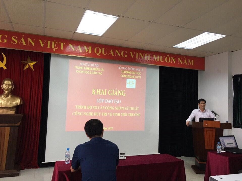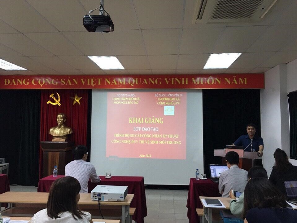 Ngày 22/11/2016, Trường Đại học Công nghệ GTVT phối hợp với Trung tâm nghiên cứu khoa học và đào tạo, Sở Giao thông vận tải Hà Nội tổ chức khai giảng khóa đào tạo trình độ sơ cấp Công nhân kỹ thuật công nghệ duy trì vệ sinh môi trường cho hơn 100 học viên.