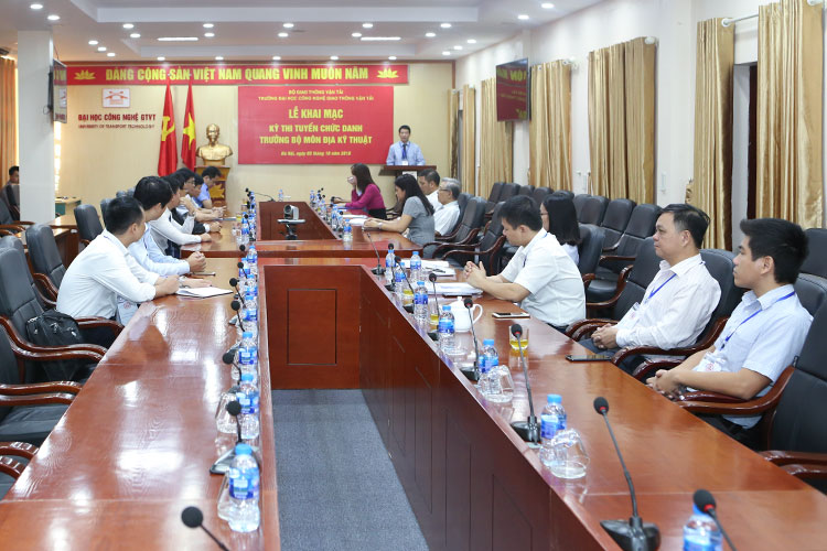 Phát biểu khai mạc kỳ thi, PGS.TS. Đào Văn Đông - Hiệu trưởng Nhà trường cho biết về quy trình tổ chức kỳ thi tuyển chức danh Trưởng Bộ môn Địa kỹ thuật, Trường Đại học Công nghệ GTVT đã thực hiện đúng theo các hướng dẫn văn bản cấp trên, nhất là của Bộ GTVT. Và việc tổ chức thi tuyển chức danh Trưởng Bộ môn Địa kỹ thuật là giải pháp để lựa chọn cán bộ lãnh đạo quản lý rất tốt, "tạo ra được một cơ hội rộng cho những người có đủ tâm, đủ tầm, đủ đức, đủ tài và năng lực cống hiến có thể tham gia ứng tuyển vào vị trí công tác mà đơn vị đó cần". Trưởng Bộ môn Địa kỹ thuật có vị trí rất quan trọng đối với Khoa Công trình, và lĩnh vực này càng ngày càng thể hiển sự quan trọng đối với chương trình đào tạo của Khoa Công trình nói riêng và toàn Trường nói chung, và thể hiện sự quan trọng đối với thực tế nghiên cứu khoa học và sản xuất của ngành xây dựng, xây dựng giao thông. Cuối cùng để cho kỳ thi được triển khai đúng quy trình và đạt kết quả tốt, PGS.TS. Đào Văn Đông đề nghị các ban của Hội đồng thi tiếp tục bám sát các kế hoạch đã đề ra, thường xuyên trao đổi, phối hợp giữa các thành viên, giữa các ban, và với tổ giám sát của Bộ GTVT.