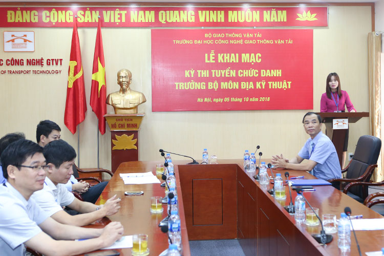 Sáng ngày 05/10/2018, Trường Đại học Công nghệ Giao thông vận tải đã tổ chức khai mạc kỳ thi tuyển chức danh Trưởng Bộ môn Địa kỹ thuật thuộc Khoa Công trình nhằm tuyển chọn được ứng viên có đủ phẩm chất, năng lực, trình độ, đảm bảo đầy đủ các tiêu chuẩn cần thiết để bổ sung vào đội ngũ cán bộ lãnh đạo - quản lý cấp bộ môn, góp phần hoàn thiện cơ cấu, tổ chức bộ máy của Nhà trường hoạt động hiệu lực, hiệu quả.