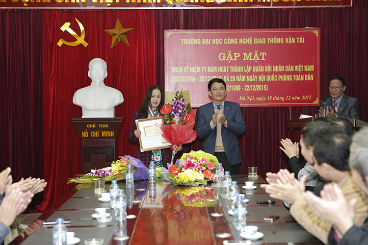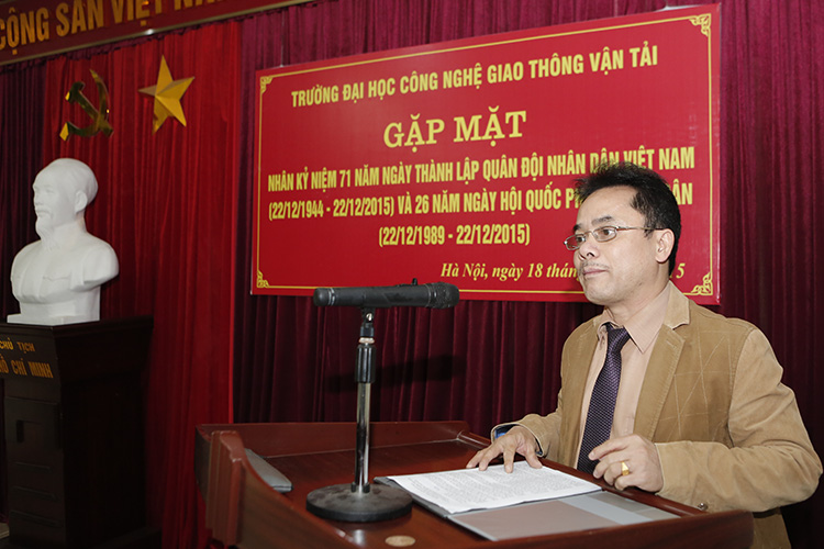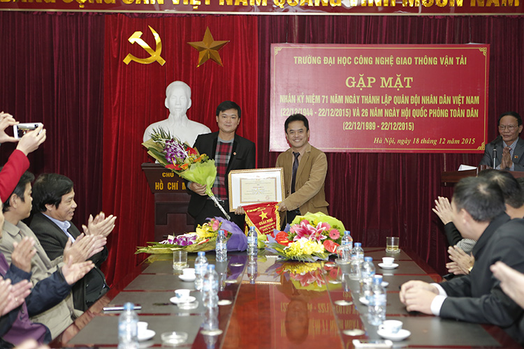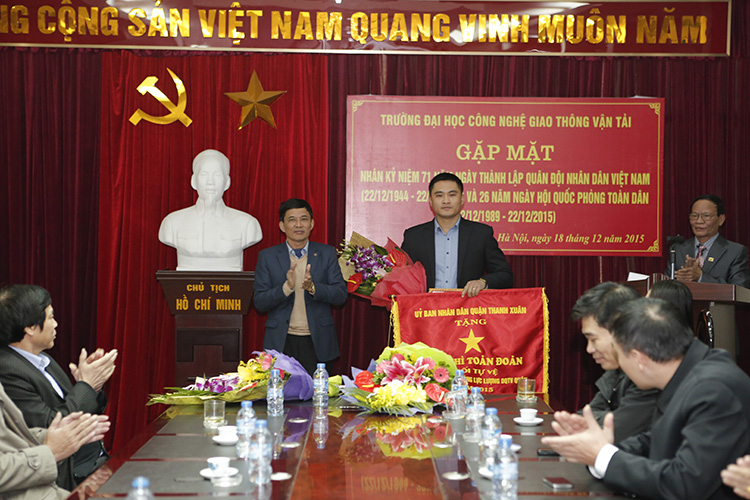 Nhân dịp kỷ niệm 71 năm ngày thành lập QĐNDVN (22/12/1944 - 22/12/2015) và 26 năm ngày Hội QPTD (22/12/1989 - 22/12/2015). Trường Đại học Công nghệ GTVT tổ chức gặp mặt thân mật các đồng chí lực lượng tự vệ, sĩ quan dự bị và đặc biệt là các đồng chí cựu chiến binh, cựu thanh niên xung phong của Nhà trường đã có thời gian tham gia chiến đấu trên các chiến trường. Tới dự và chỉ đạo buổi gặp mặt thân mật này, về phía Đảng ủy, Ban Giám hiệu có đồng chí TS.Vũ Ngọc Khiêm, Phó Bí thư Đảng ủy, Phó Hiệu trưởng, Chỉ huy trưởng Ban Chỉ huy Quân sự Trường. Cũng toàn thể các đồng chí lãnh đạo các Phòng, Ban, Khoa, Trung tâm và đặc biệt là các đồng chí trong lực lượng Tự vệ, SQDB, TNXP, CCB tham gia chiến đấu trên các chiến trường.