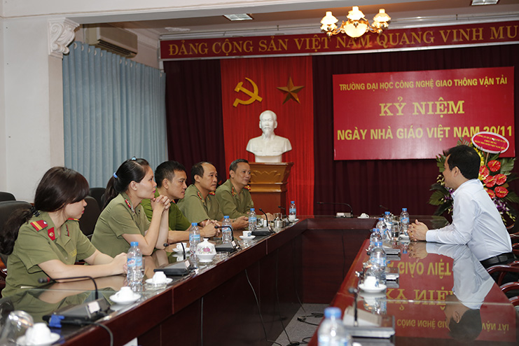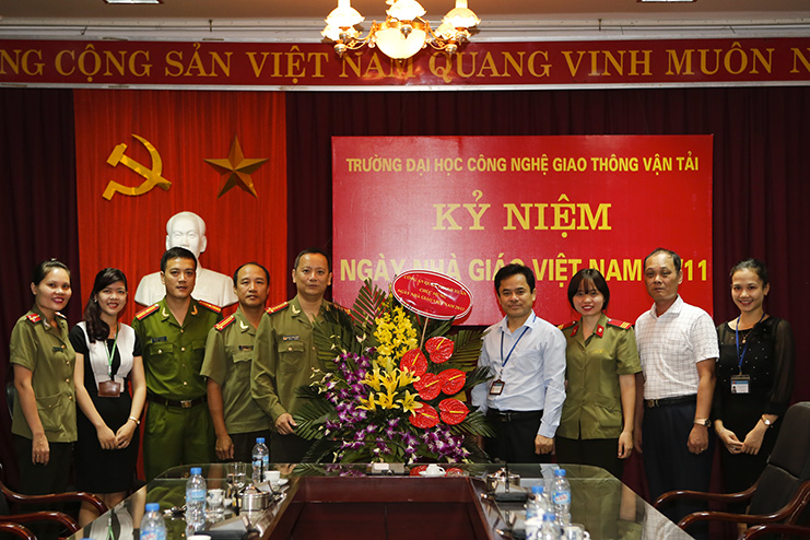 Lãnh đạo Công an Quận Thanh Xuân đến tặng hoa và chúc mừng Trường Đại học Công nghệ GTVT