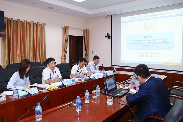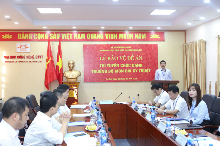 Sáng ngày 22/10/2018, Trường Đại học Công nghệ Giao thông vận tải đã tổ chức Lễ Bảo vệ đề án Thi tuyển chức danh Trưởng Bộ môn Địa kỹ thuật - Khoa Công trình với tiêu đề "Phát triển Bộ môn Địa kỹ thuật giai đoạn 2018-2023 và tầm nhìn đến năm 2030" nhằm phát hiện, thu hút, trọng dụng những người có đức, có tài; tạo môi trường cạnh tranh lành mạnh trong công tác bổ nhiệm lãnh đạo, quản lý và nâng cao chất lượng đội ngũ lãnh đạo, quản lý tại các đơn vị.