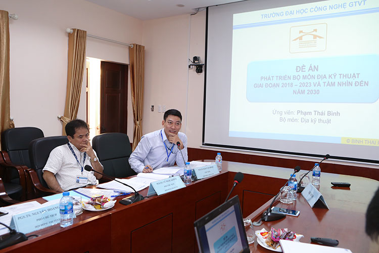 Thực hiện kế hoạch thi tuyển chức danh Trưởng Bộ môn Địa Kỹ thuật - Khoa Công trình, ngày 05/10/2018, Trường Đại học Công nghệ Giao thông vận tải đã tổ chức thi tuyển chức danh Trường Bộ môn Địa Kỹ thuật - Khoa Công trình với phần thi viết và kết quả có 2 thí sinh đã lọt vào vòng thi bảo vệ đề án là TS. Phạm Thái Bình và TS. Hồ Sĩ Lành.