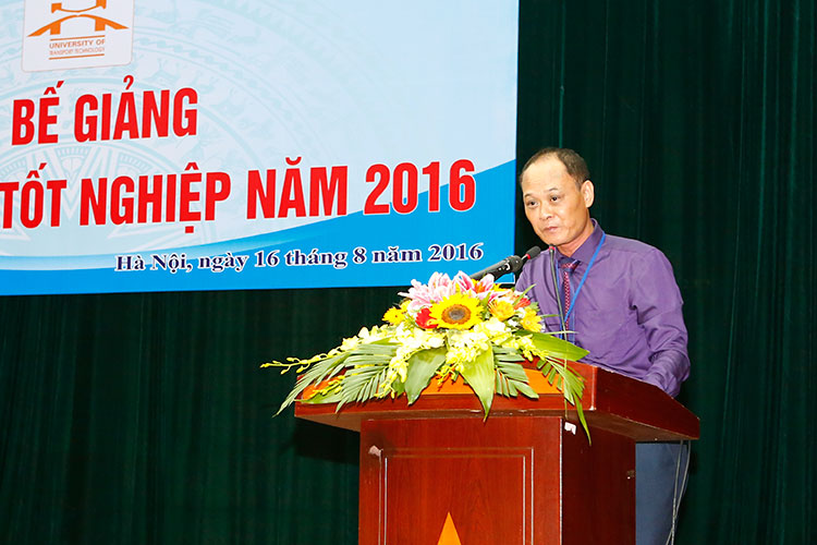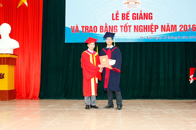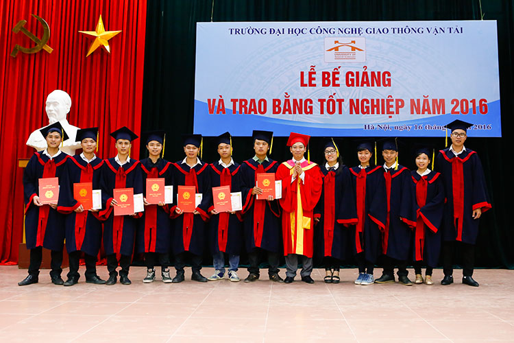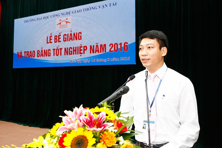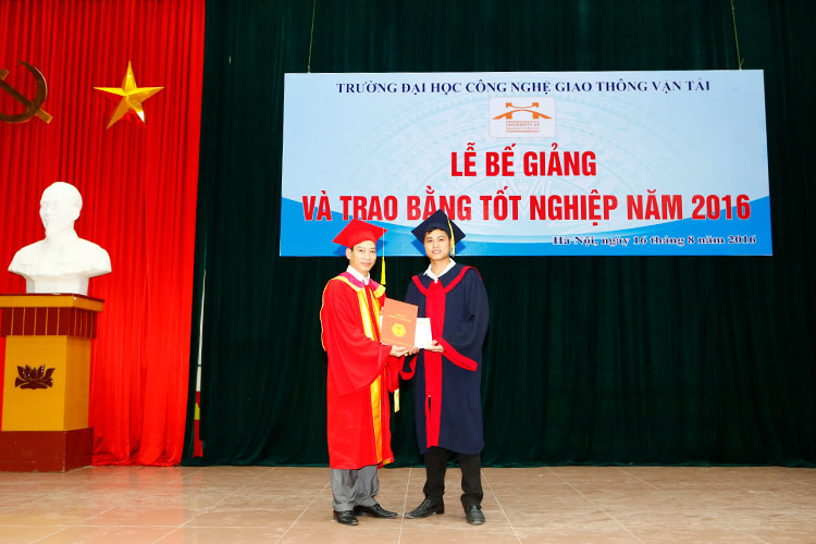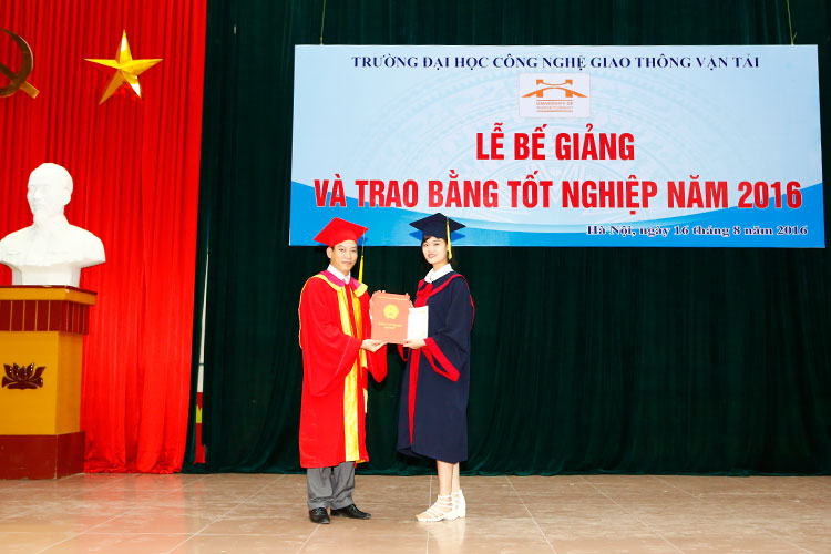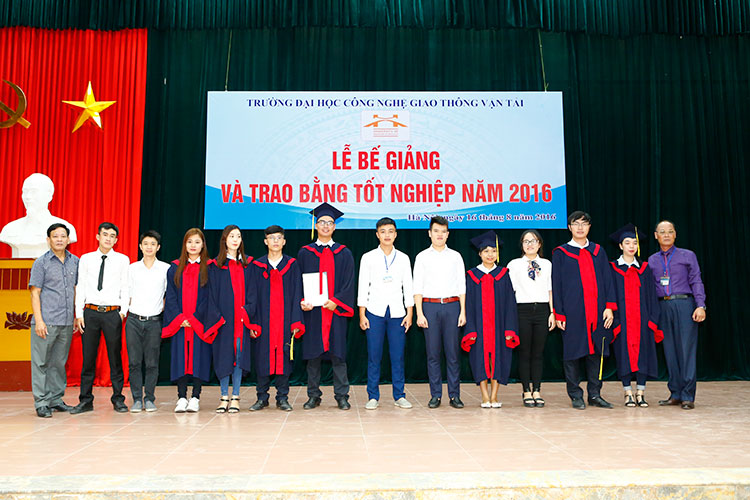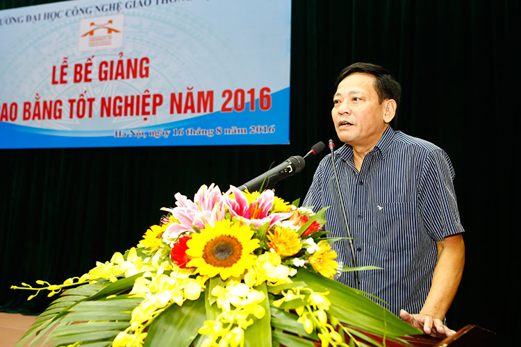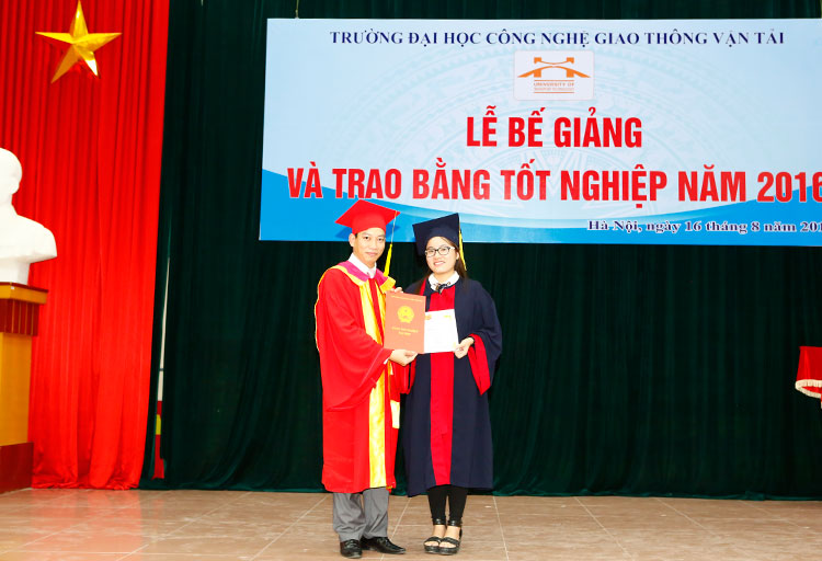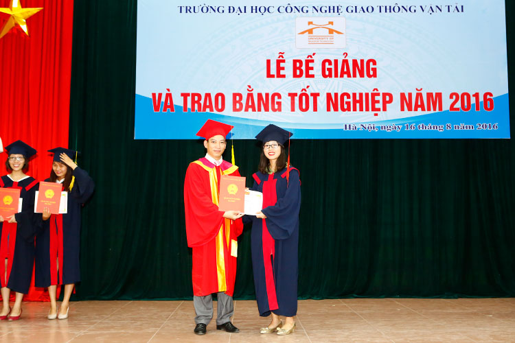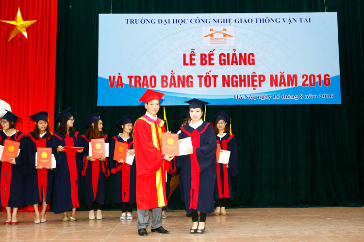 Sáng ngày 16/08/2016, tại Hội trường lớn Cơ sở đào tạo Hà Nội, Trường Đại học Công nghệ GTVT đã tổ chức Lễ bế giảng và trao bằng tốt nghiệp cho 950 tân kỹ sư công nghệ khối ngành kỹ thuật Khóa 62, cử nhân khối ngành kinh tế Khoá 63 và cử nhân hệ cao đẳng Khoá 64. Dự buổi Lễ có PGS.TS. Đào Văn Đông - Hiệu trưởng, TS. Nguyễn Hoàng Long - Phó Hiệu trưởng, TS. Nguyễn Mạnh Hùng - Chủ tịch Hội đồng trường; đại diện lãnh đạo các Khoa, Phòng, Ban, Trung tâm của Trường cùng các phụ huynh, sinh viên đại học, cao đẳng khoá 62, 63, 64.