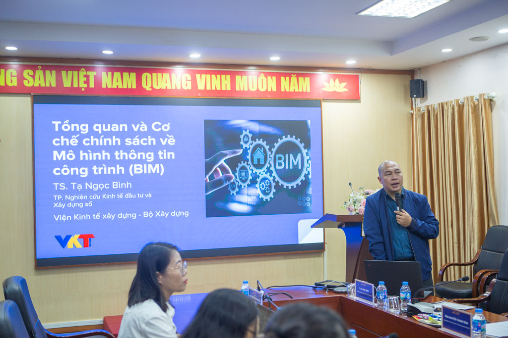 Ông Tạ Ngọc Bình, Trưởng phòng Nghiên cứu Kinh tế đầu tư và Xây dựng số, Viện Kinh tế xây dựng chia sẻ chủ đề “Tổng quan về mô hình thông tin công trình (BIM)”
