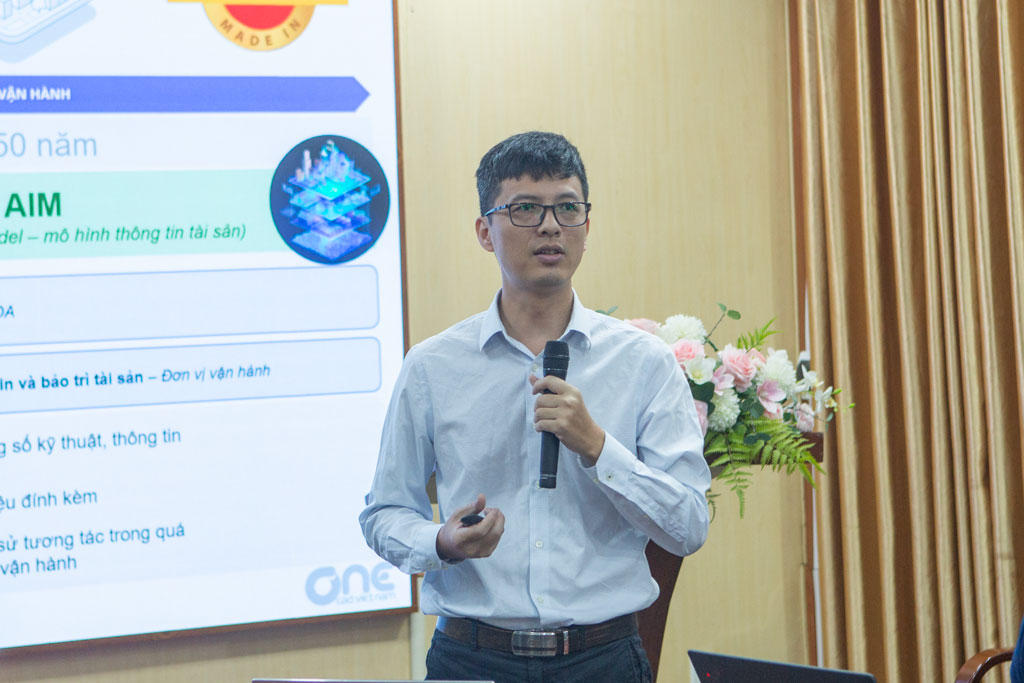 Ông Dương Minh Hải, Giám đốc kỹ thuật, Công ty TNHH OneCAD Việt Nam trình bày chủ đề “Ứng dụng môi trường dữ liệu chung (CDE) trong quản lý thông tin tại dự án áp dụng BIM”