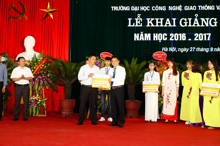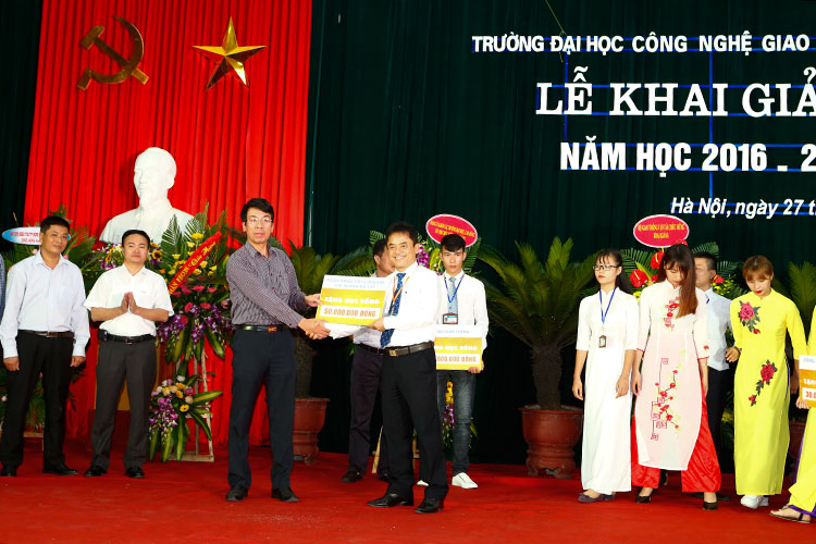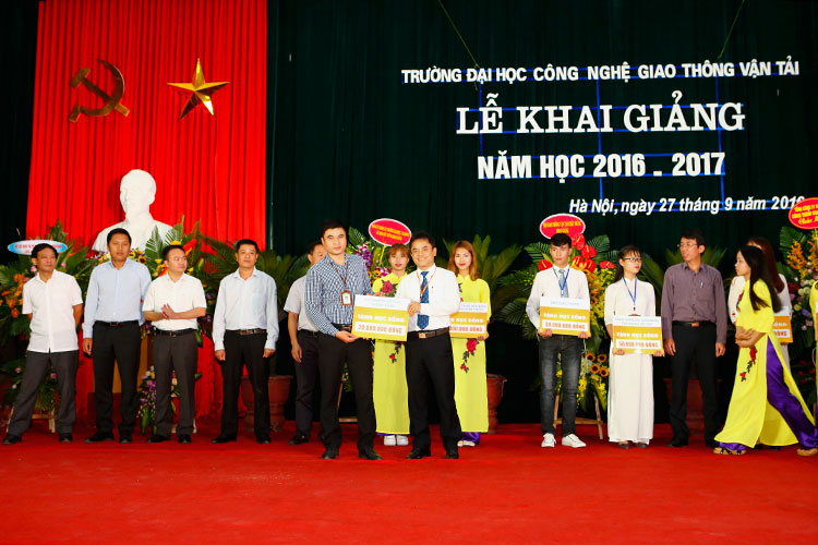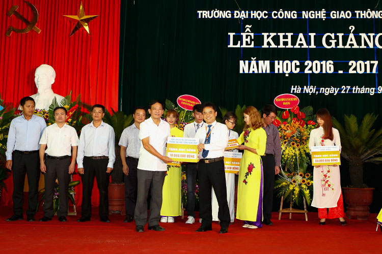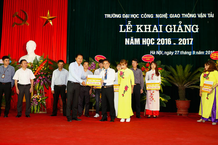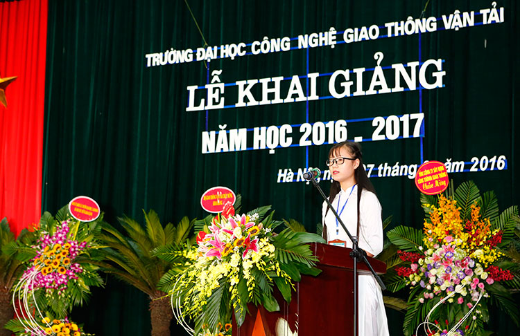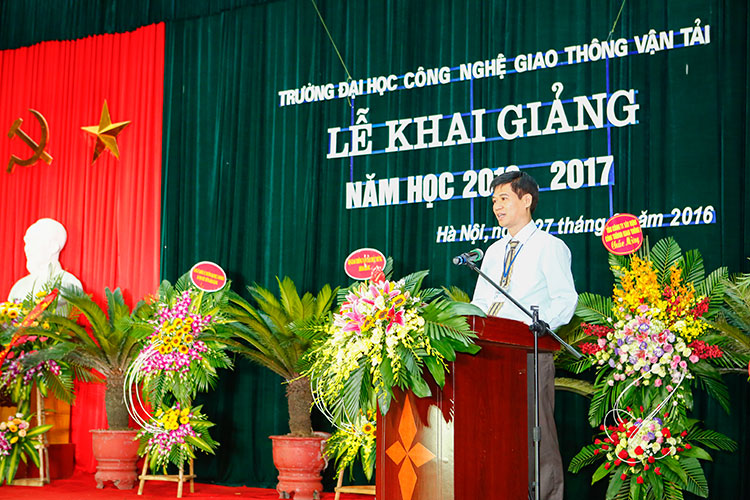 Lễ khai giảng năm học mới (2016 - 2017) của Trường Đại học Công nghệ GTVT vinh dự có sự tham dự của các đại biểu, lãnh đạo từ Bộ GTVT: Đ/c Nguyễn Ngọc Đông - Phó Bí thư Ban Cán sự Đảng - Thứ trưởng Bộ GTVT; Đ/c Trần Văn Lâm - UV BCS Đảng - Vụ trưởng Vụ TCCB; Đ/c Trần Hoài An - Phó Vụ trưởng Vụ TCCB; Đ/c Nguyễn Trí Đức - Chánh văn phòng Bộ GTVT; Đ/c Đỗ Văn Quốc - Vụ trưởng Vụ Tài chính; Đ/c Kiều Thị Diễm - Phó Vụ trưởng Vụ ATGT; Đ/c Lâm Văn Hoàng - TGĐ BQL DA đường HCM; Đ/c Nguyễn Bá Kiên - Tổng Biên tập Báo Giao thông; Đ/c Hoàng Quốc Tuệ - Chủ tịch Công đoàn Cơ quan Bộ GTVT; về phía Lãnh đạo Thành phố Hà Nội có Đ/c Vũ Tuấn Dũng - Bí thư Đảng uỷ Khối các trường Đại học, Cao đẳng TP. Hà Nội; Đ/c Nguyễn Hải Ninh - Chánh Văn phòng ĐU Khối các trường ĐH, CĐ TP. Hà Nội; về phía các doanh nghiệp có ông Nguyễn Xuân Hiệp - PGĐ Ngân hàng TMCP Vietcombank - Chi nhánh Hà Tây; ông Hoàng Đức Nghĩa - Phó GĐ Công ty cổ phần xây dựng Nhật Nhật Minh; ông Lê Duy Hải - Phó GĐ Ngân hàng VietinBank - Chi nhánh Ba Đình; ông Nguyễn Duy Dũng - Giám đốc Chi nhánh Viettel Thanh Xuân; ông Phạm Việt Khoa - Chủ tịch HĐQT Công ty Cổ phần kỹ thuật nền móng và công trình ngầm FECON; ông Chu Văn Hải - Giám đốc Công ty TNHH Hồng Quảng, Trưởng Ban Liên lạc Cựu SV Thanh Hoá; ông Nguyễn Đình Trọng - Tổng GĐ Công ty T.Tech Thăng Long...
