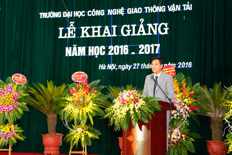 Phát biểu tại Lễ Khai giảng năm học 2016 - 2017 của Trường Đại học Công nghệ GTVT, đ/c Nguyễn Ngọc Đông - Phó Bí thư BCS Đảng, Thứ trưởng Bộ GTVT đã biểu dương và đánh giá cao những thành tích mà thầy trò Trường Đại học Công nghệ GTVT đã nỗ lực đạt được trong năm học 2015 - 2016 cũng như thời gian qua, đặc biệt trong lĩnh vực đào tạo, khoa học, hợp tác quốc tế, đội ngũ cán bộ, giảng viên, cơ sở vật chất... Trường Đại học Công nghệ GTVT đã có những bước tiến vượt bật, rất đáng tự hào. Để Trường tiếp tục khẳng định là vị trí tiên phong đi đầu của hệ thống đào tạo nguồn nhân lực cho ngành GTVT và nền kinh tế quốc dân, xứng đáng là cơ sở giáo dục trọng điểm của quốc gia, đồng chí Nguyễn Ngọc Đông đã có những yêu cầu, chỉ đạo cụ thể cho các mặt hoạt động của Trường Đại học Công nghệ GTVT trong thời gian tới; đồng thời bày tỏ tin tưởng với bề dày truyền thống 71 năm xây dựng và phát triển, tập thể lãnh đạo, cán bộ, giảng viên, sinh viên của Nhà trường sẽ tiếp tục hoàn thành xuất sắc nhiệm vụ mà Đảng, Nhà nước và nhân dân giao phó, tiếp tục dành nhiều thắng lợi lớn trong năm học mới.