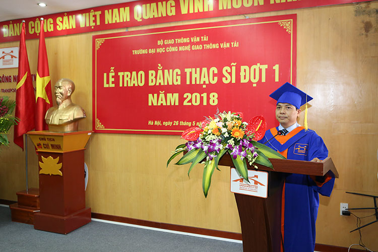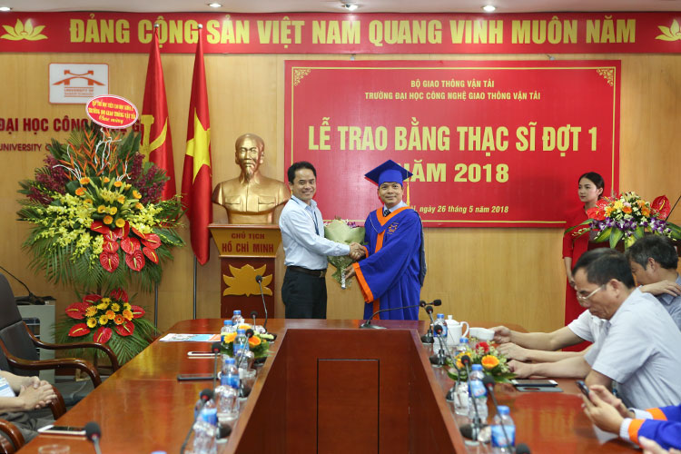 Sáng ngày 26/5/2018, Trường Đại học Công nghệ Giao thông vận tải long trọng tổ chức Lễ trao bằng Thạc sĩ đợt 1 năm 2018 cho 53 học viên của các chuyên ngành Công nghệ kỹ thuật xây dựng đường ô tô, Công nghệ kỹ thuật xây dựng cầu hầm và Công nghệ kỹ thuật cơ khí ô tô.