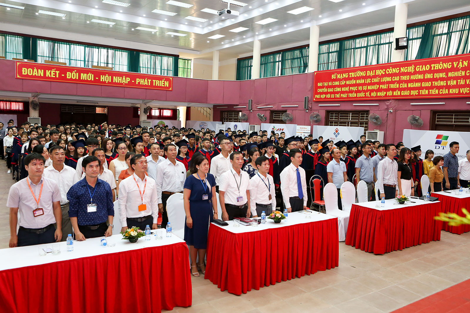 Sau cùng, thay mặt lãnh đạo nhà trường Thầy một lần nữa chúc mừng và cảm ơn các tân kỹ sư, cử nhân, những người đã góp phần làm nên thương hiệu của Nhà trường. "Tôi xin chúc mừng và trân trọng cảm ơn toàn thể cán bộ, giảng viên đã thêm một lần hoàn thành trọng trách người chở đò đưa các em sinh viên yêu quý của mình cập bến bờ tri thức. Trân trọng cảm ơn các bậc phụ huynh đã hy sinh mọi mặt để dưỡng-dục các em. Và đặc biệt, tôi xin trân trọng cảm ơn 20 doanh nghiệp tham gia buổi Lễ ngày hôm nay, chính sự có mặt của quý vị là thể hiện tình cảm và trách nhiệm đối với sự nghiệp giáo dục đào tạo, với xã hội và với thế hệ trẻ Việt Nam. Quan trọng hơn cả, các doanh nghiệp có mặt hôm nay cũng chính là các địa chỉ uy tín, tin cậy để các tân kỹ sư, cử nhân của Nhà trường tìm hiểu, lựa chọn cho mình một vị trí việc làm thích hợp. Sự hảo tâm của các doanh nghiệp cũng chính là niềm động viên, tiếp sức cho các thế hệ sinh viên tiếp theo của Trường Đại học Công nghệ GTVT vững bước trưởng thành". Cuối cùng, PGS.TS. Đào Văn Đông mong muốn các doanh nghiệp tiếp tục quan tâm, hỗ trợ sự nghiệp đào tạo của Nhà trường; quan tâm, hỗ trợ và lựa chọn các ứng viên hội đủ kiến thức, đạo đức, kỹ năng và phù hợp với văn hóa doanh nghiệp; các tân kỹ sư, tân cử nhân hãy mạnh dạn thể hiện mình trước các doanh nghiệp.