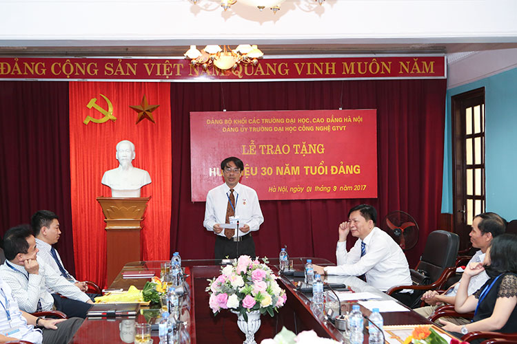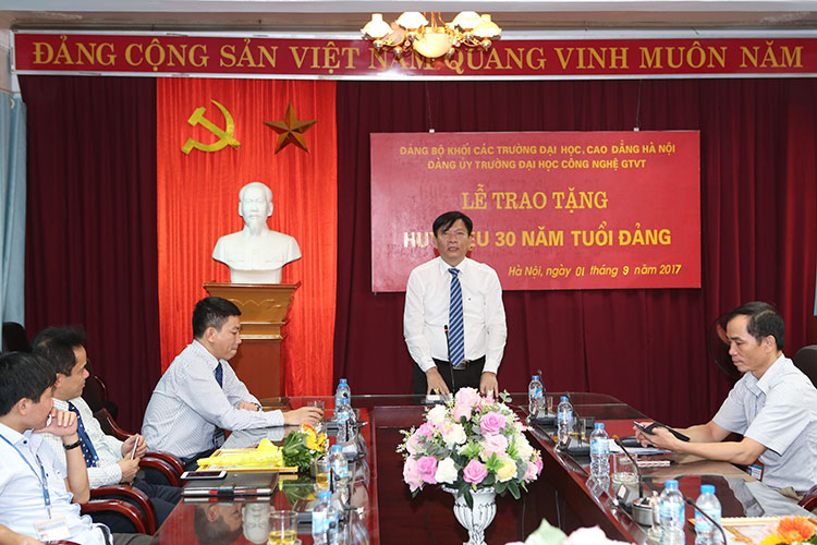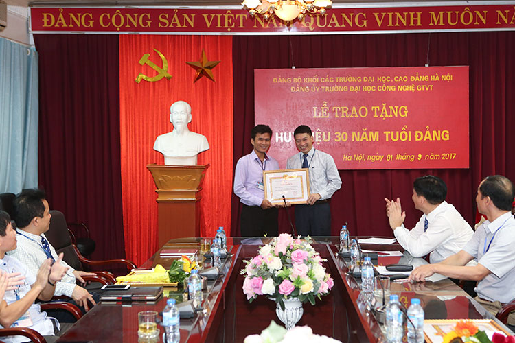 Ngày 01/9/2017, Đảng uỷ Trường Đại học Công nghệ Giao thông vận tải đã long trọng tổ chức Lễ trao tặng Huy hiệu 30 năm tuổi Đảng cho các đồng chí đảng viên được trao tặng Huy hiệu Đảng đợt 02/9/2017 và khen thưởng các đồng chí, tập thể có thành tích xuất sắc trong công tác nghiên cứu khoa học và công tác xây dựng Đảng.