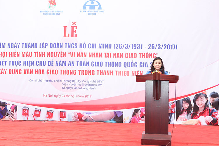 Sáng ngày 24/3/2017, Hội đồng các Bí thư Đoàn TN ngành GTVT phối hợp cùng Công đoàn GTVT Việt Nam, UBATGTQG, Trường Đại học Công nghệ GTVT, Viện Huyết học - Truyền máu Trung ương và Công ty TNHH Honda Hồng Hạnh tổ chức Lễ kỷ niệm 86 năm ngày thành lập Đoàn TNCS Hồ Chí Minh (26/3/1931 - 26/3/2017), ngày hội hiến máu tình nguyện “vì nạn nhân tai nạn giao thông” và cam kết thực hiện chủ đề năm an toàn giao thông quốc gia 2017 là “xây dựng văn hoá giao thông trong thanh thiếu niên”.