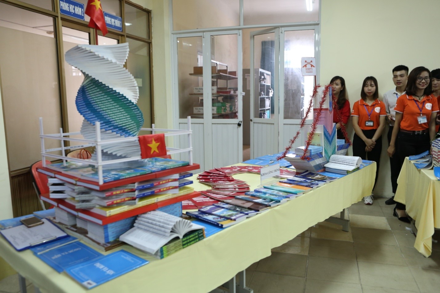 Khu trưng bày sách do các tác giả trong trường biên soạn năm học 2018-2019
