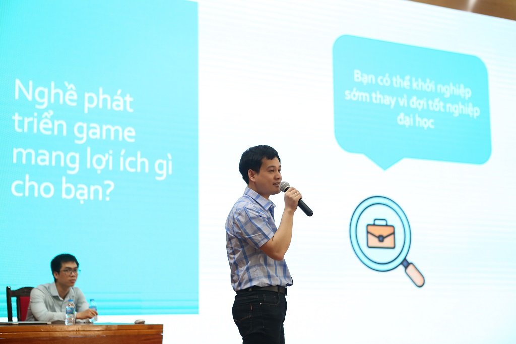 Tại buổi Tọa đàm, thầy Doãn Anh Tuấn giới thiệu về quy trình sản xuất game bằng công cụ Unity, cách phát triển game trên Unity, và chia sẻ cơ hội kiếm tiền từ chính ứng dụng do mình tạo ra trên các "chợ ứng dụng" của Apple và Google Play. Các bạn sinh viên dành nhiều câu hỏi cho các diễn giả, buổi tọa đàm nhận được nhiều đánh giá tích cực từ các bạn sinh viên ngành CNTT cũng như các bạn sinh viên đang theo học những ngành khác muốn tìm hiểu về lập trình mobile.