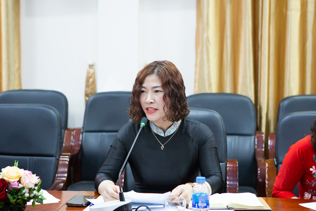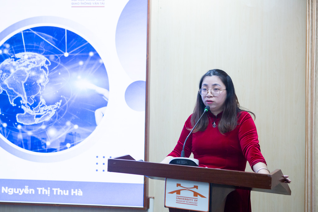 Đồng chí Nguyễn Thị Thu Hà trình bày báo cáo tham luận “ Tinh gọn bộ máy gắn với công tác chuyển đổi số”