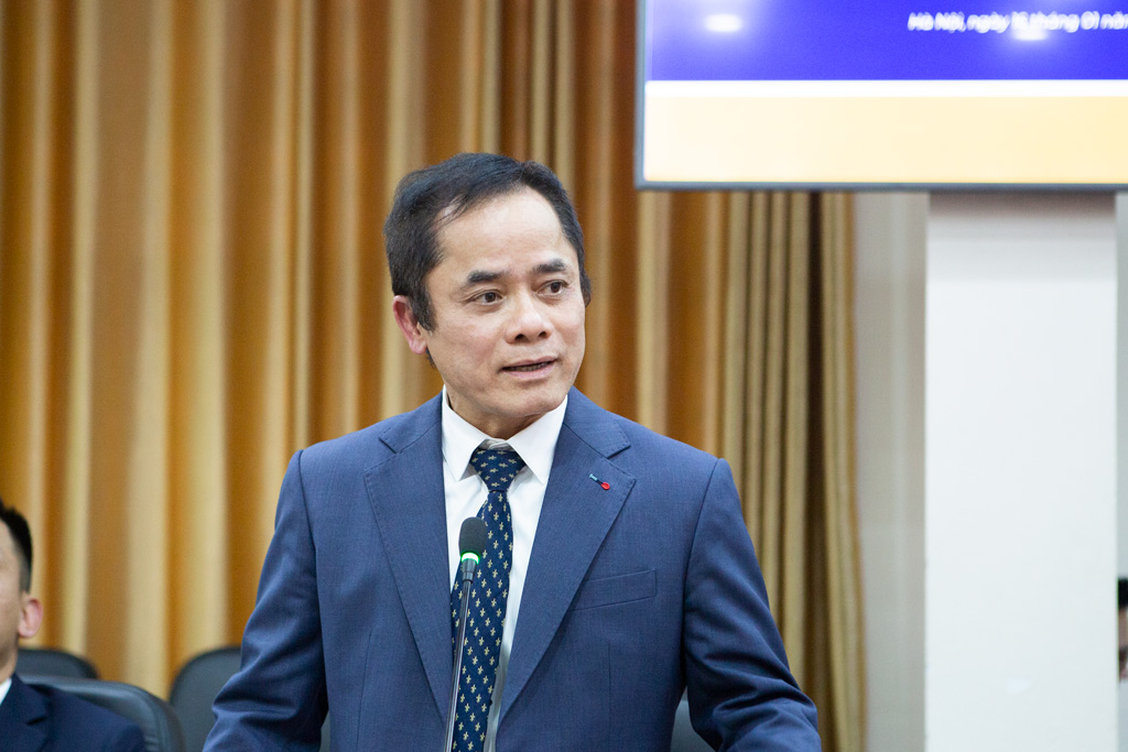 Đồng chí Vũ Ngọc Khiêm - Bí thư Đảng ủy, Chủ tịch Hội đồng Trường phát biểu tại buổi sinh hoạt chuyên đề