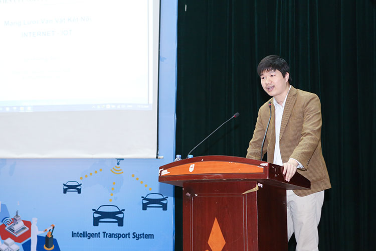 Ông Vũ Anh Tuấn - Phó Cục trưởng Cục quản lý đường bộ cao tốc, Tổng cục đường bộ Việt Nam báo cáo về "Hệ thống giao thông thông minh - ITS" tại Hội thảo