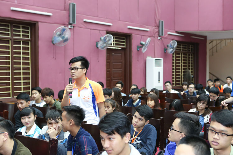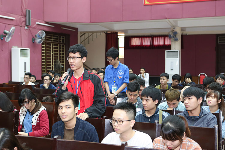 Các bạn sinh viên Trường Đại học Công nghệ GTVT tham dự hội thảo đặt câu hỏi cho các diễn giả tại Hội thảo