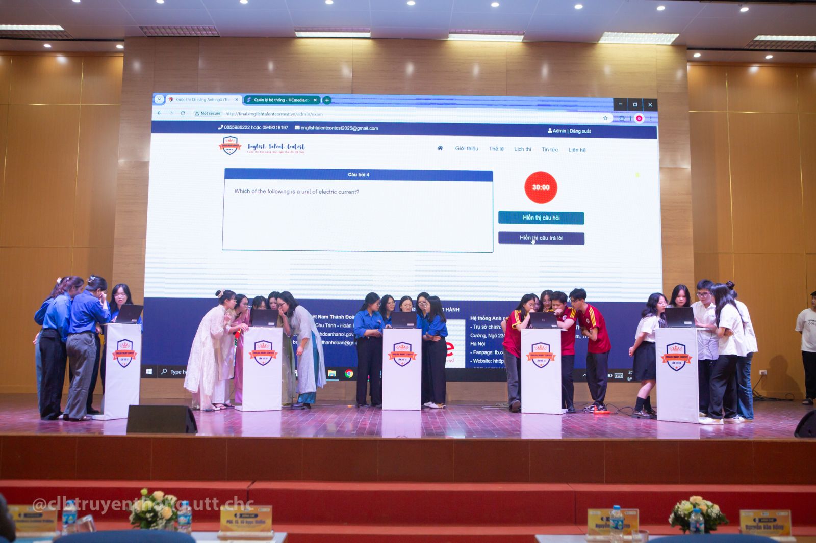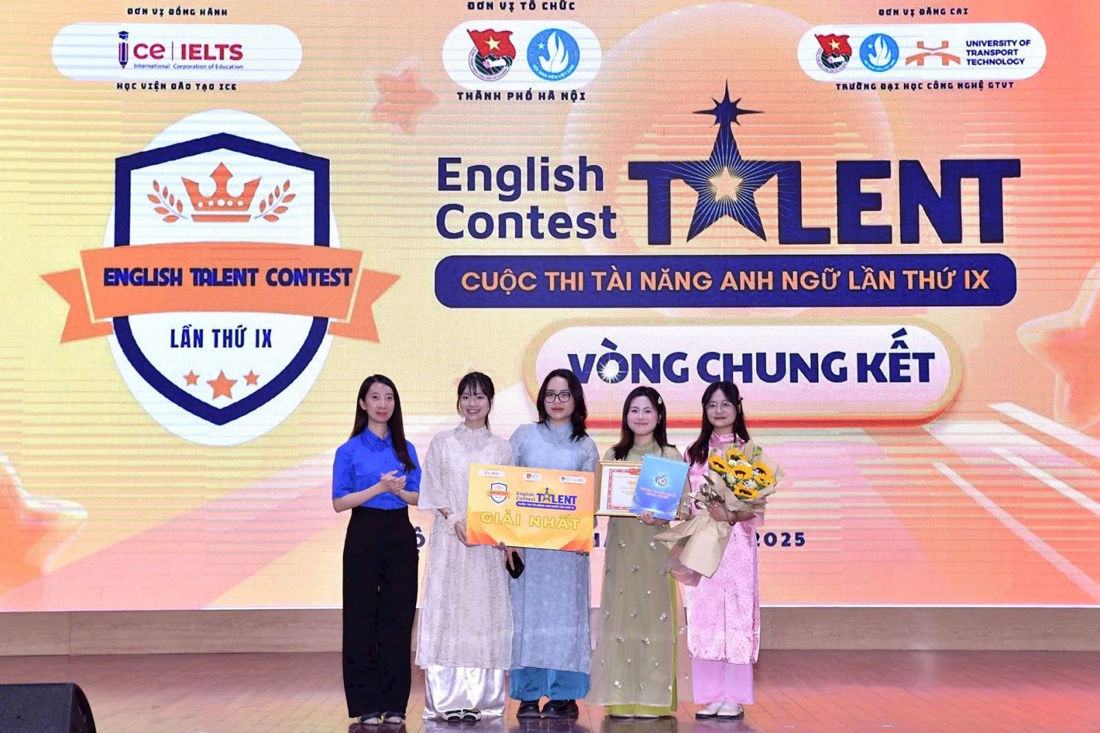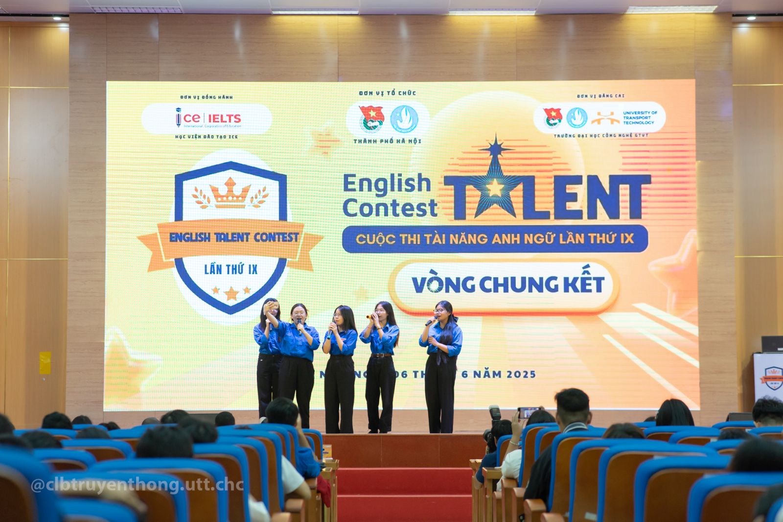 Chiều ngày 6/6/2025, Vòng Chung kết cuộc thi “Tài năng Anh ngữ dành cho học sinh, sinh viên Thủ đô” lần thứ IX đã diễn ra thành công tại Hội trường lớn Trường Đại học Công nghệ Giao thông Vận tải (UTT). Cuộc thi do Thành đoàn - Hội Sinh viên Việt Nam thành phố Hà Nội phối hợp với Trung tâm Anh ngữ ICE IELTS và Đoàn Thanh niên - Hội Sinh viên Trường UTT tổ chức.