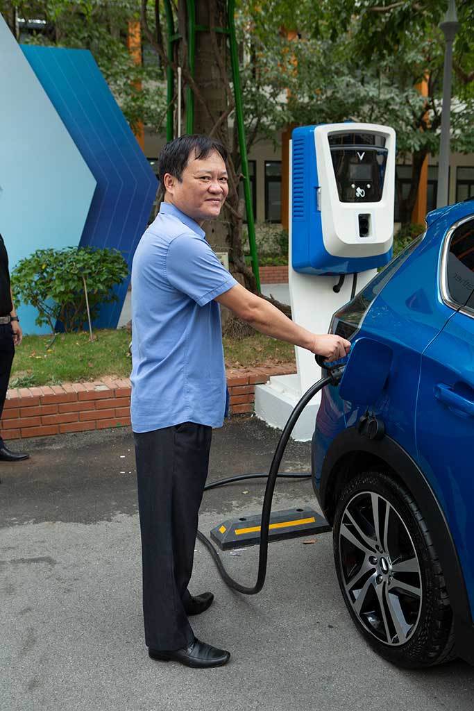 TS. Nguyễn Quang Anh- Trưởng Khoa Cơ khí thực hiện nghi thức cắm sạc điện ô tô