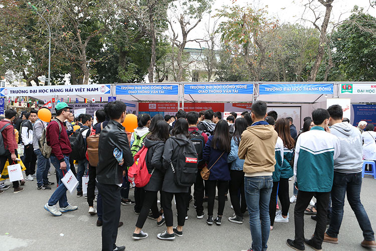 Gian hàng tư vấn của Trường Đại học Công nghệ GTVT thu hút rất nhiều các bạn học sinh tham quan và xin tư vấn.