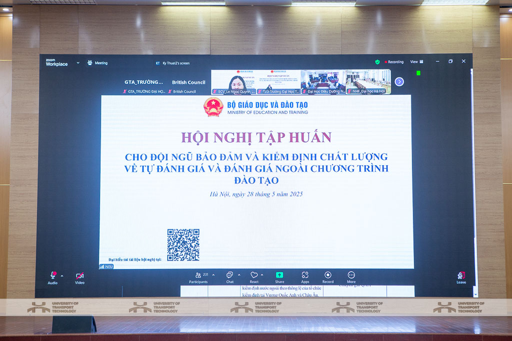 Ngày 28/5/2025, Trường Đại học Công nghệ GTVT đã tham dự Hội nghị tập huấn cho đội ngũ bảo đảm và kiểm định chất lượng về tự đánh giá và đánh giá ngoài chương trình đào tạo do Cục Quản lý chất lượng - Bộ Giáo dục và Đào tạo tổ chức với sự tham dự của gần 300 cán bộ, giảng viên, người lao động trong toàn trường theo hình thức trực tuyến tại ba điểm cầu: Hà Nội, Vĩnh Phúc và Thái Nguyên.