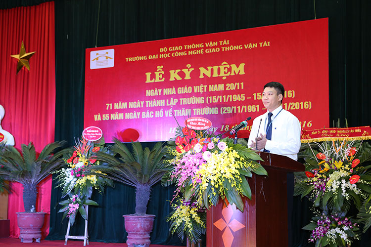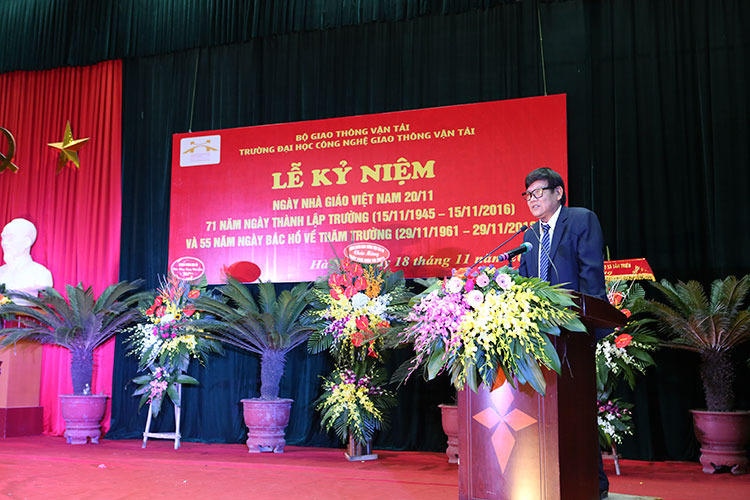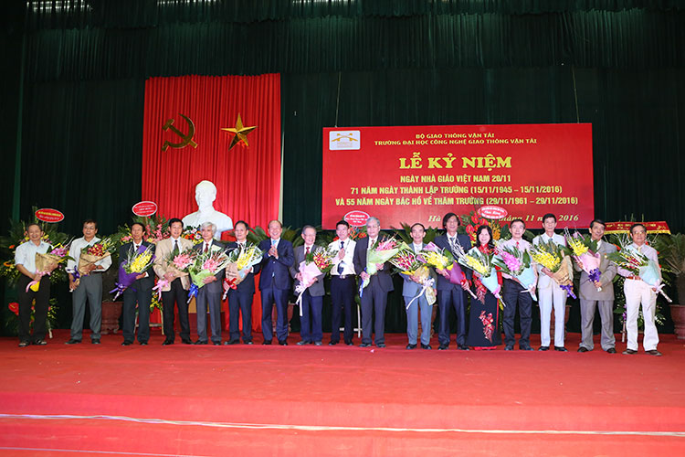 Sáng ngày 18/11, Trường Đại học Công nghệ GTVT long trọng tổ chức kỷ niệm 71 năm thành lập (15/11/1945 – 15/11/2016), 55 năm Bác Hồ về thăm trường (29/11/1961 – 29/11/2016) và 34 năm ngày Nhà giáo Việt Nam 20/11.