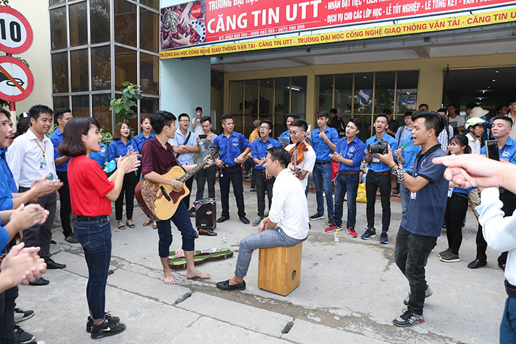 Bên cạnh các thủ tục nhập học các tân sinh viên được hòa mình vào trong không khí văn nghệ vui tươi, năng động đến từ các đoàn đội, nhóm, câu lạc bộ của sinh viên Nhà trường