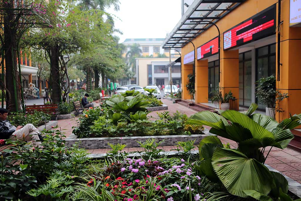 Khuôn viên được trồng nhiều cây xanh và hoa