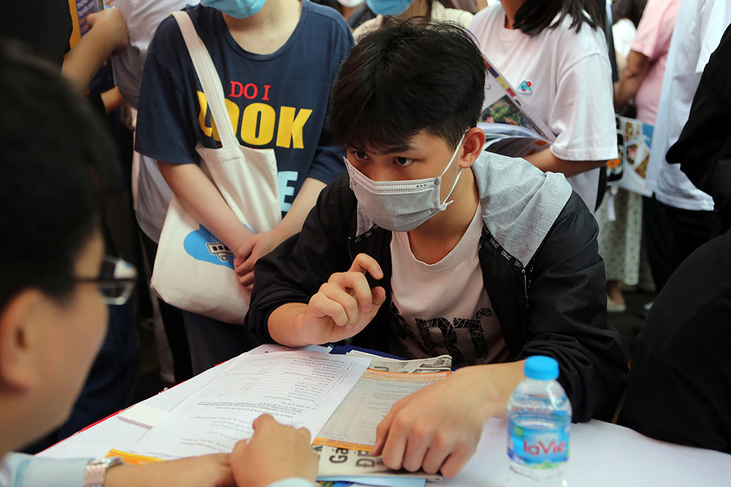 Gian hàng của Trường ĐH Công nghệ GTVT thu hút đông đảo thí sinh quan tâm, tư vấn