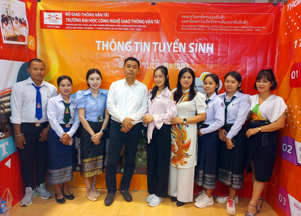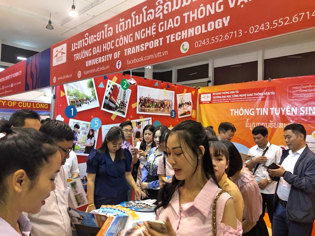 Năm nay trường Đại học Công nghệ GTVT tiếp tục tham gia triển lãm với mong muốn giới thiệu tới học sinh, sinh viên và người dân Lào về ngôi trường có truyền thống hơn 77 năm xây dựng và phát triển, trong đó đã đào tạo hàng trăm kỹ sư cho các ngành giao thông, kinh tế của nước bạn Lào.
