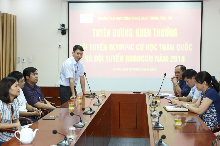 Phát biểu tại buổi lễ tuyên dương, PGS.TS. Đào Văn Đông - Hiệu trưởng Nhà trường chúc mừng và đánh giá cao những cố gắng của các đội tuyển, đặc biệt như đội tuyển Robocon (UTT-YCC02) đã xuất sắc là 1 trong 32 đội tuyển trên cả nước vào vòng Chung kết Cuộc thi Sáng tạo Robocon Việt Nam năm 2018. Đội tuyển Olympic Cơ học tiếp tục phát huy truyền thống vẻ vang của các đội tuyển Olympic các năm trước, gặt hái được nhiều thành tích cao tại kỳ thi năm nay. PGS.TS. Đào Văn Đông đề nghị các đội tuyển cần khẩn trương nghiêm túc nhìn nhận lại những bài học đã qua, những điểm yếu, điểm mạnh của từng cá nhân, đội tuyển. Đưa ra một kế hoạch dài hơn, chi tiết hơn, cẩn thận hơn để đạt được những điểm số tối đa trong các kỳ thi sắp tới. Cuối cùng, PGS.TS. Đào Văn Đông gửi lời cảm ơn các thầy cô, các bạn sinh viên trong đội tuyển đã nỗ lực hết mình mang vinh quang về cho Nhà trường, chúc các đội tuyển sẽ gặt hái được nhiều thành tích cao hơn nữa trong các kỳ thi sắp tới.