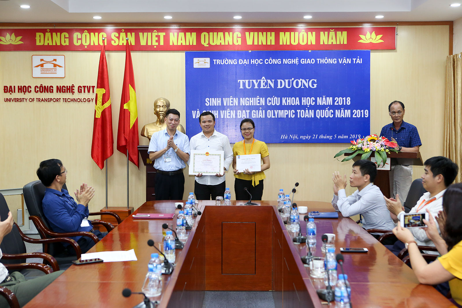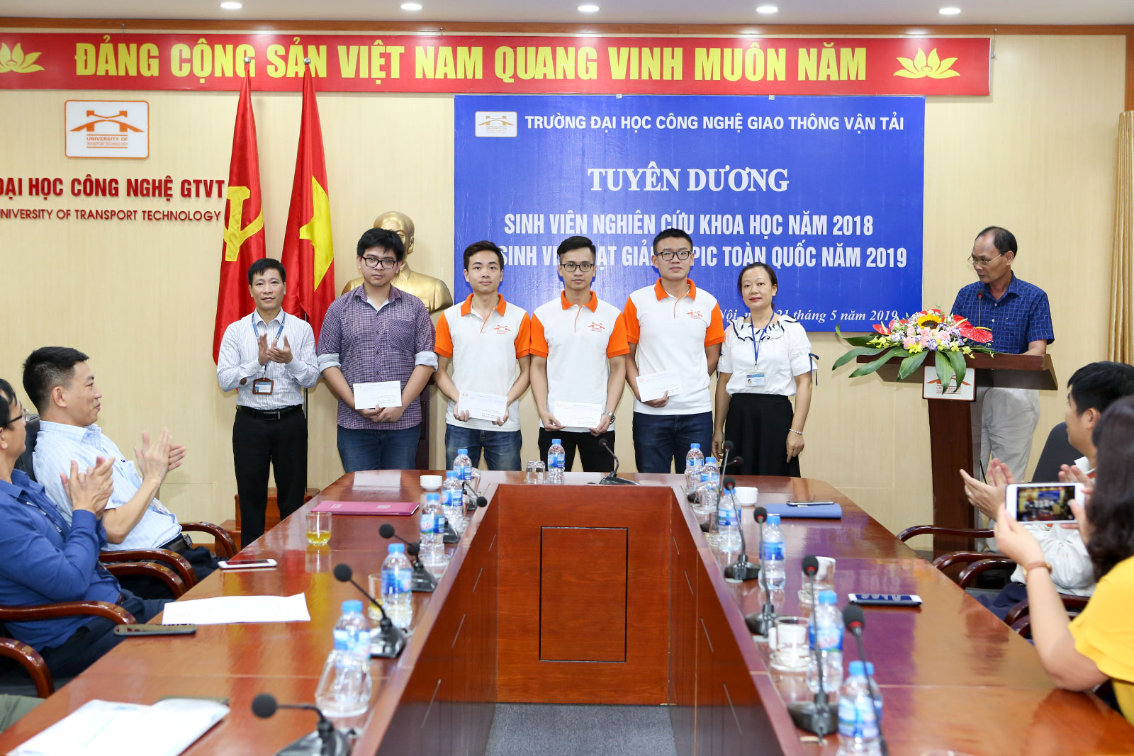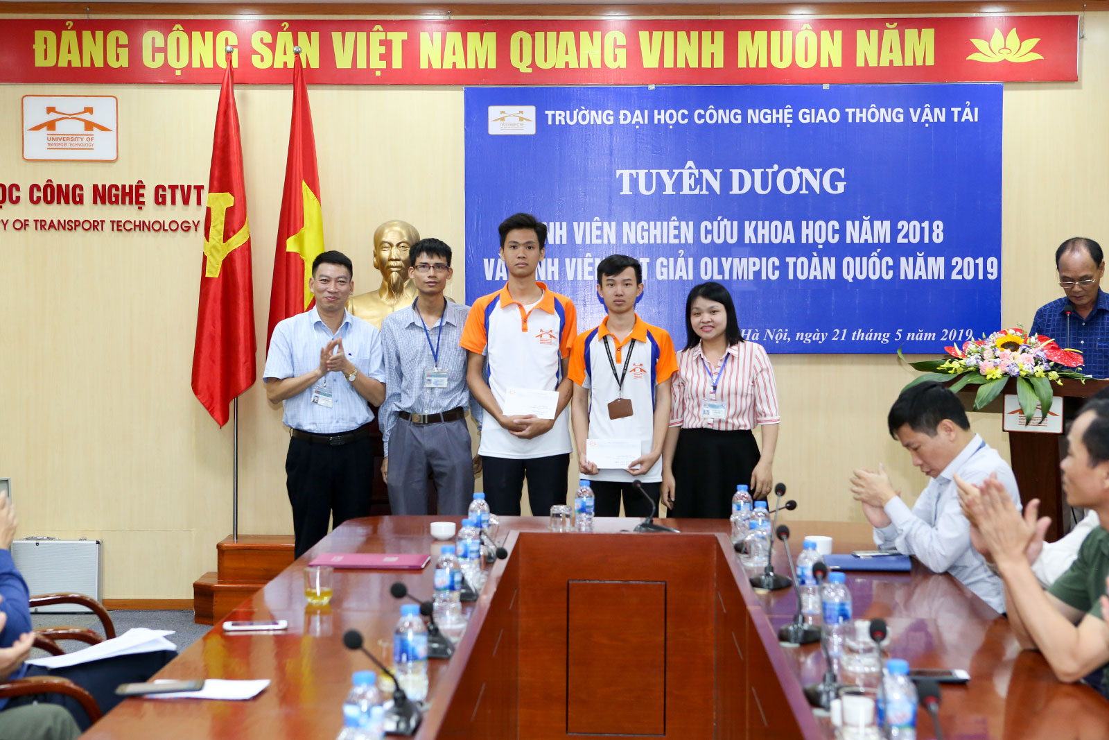 Ngày 21/5/2019, tại phòng họp trực tuyến 2 cơ sở đào tạo Vĩnh Phúc - Hà Nội, Nhà trường tổ chức Lễ tuyên dương sinh viên đạt giải trong các kỳ thi Olympic toán học toàn quốc năm 2019 tại Nha Trang, Olympic Cơ học toàn quốc năm 2019 tại Hà Nội và sinh viên tham gia nghiên cứu khoa học năm học 2018-2019.