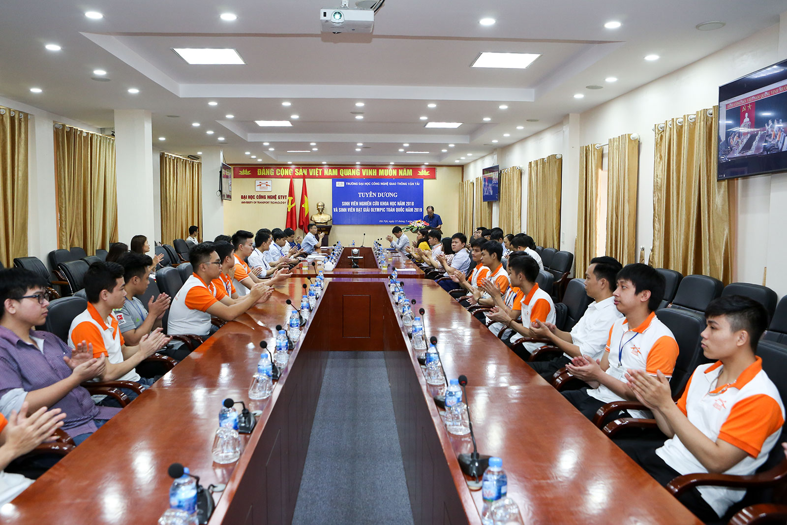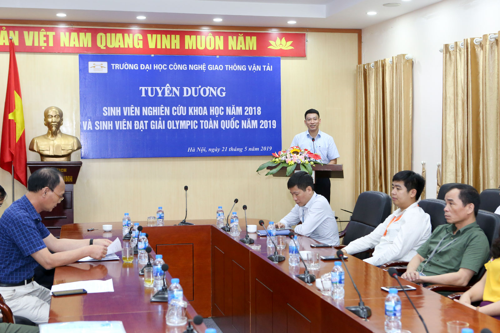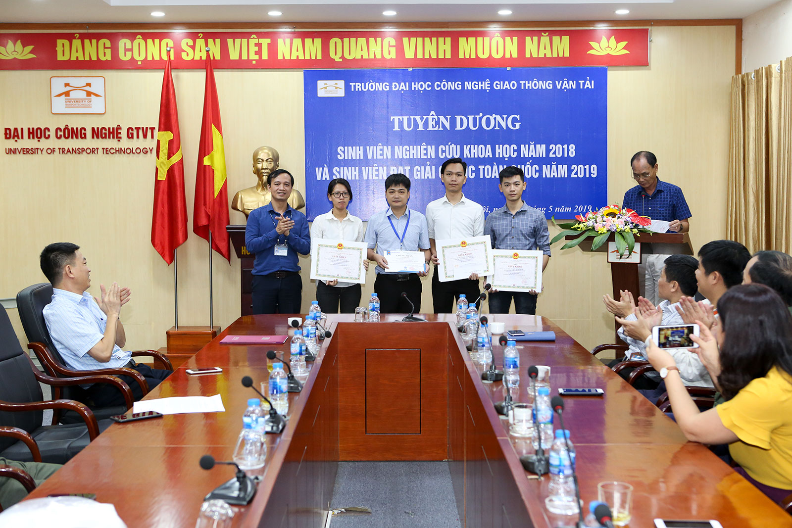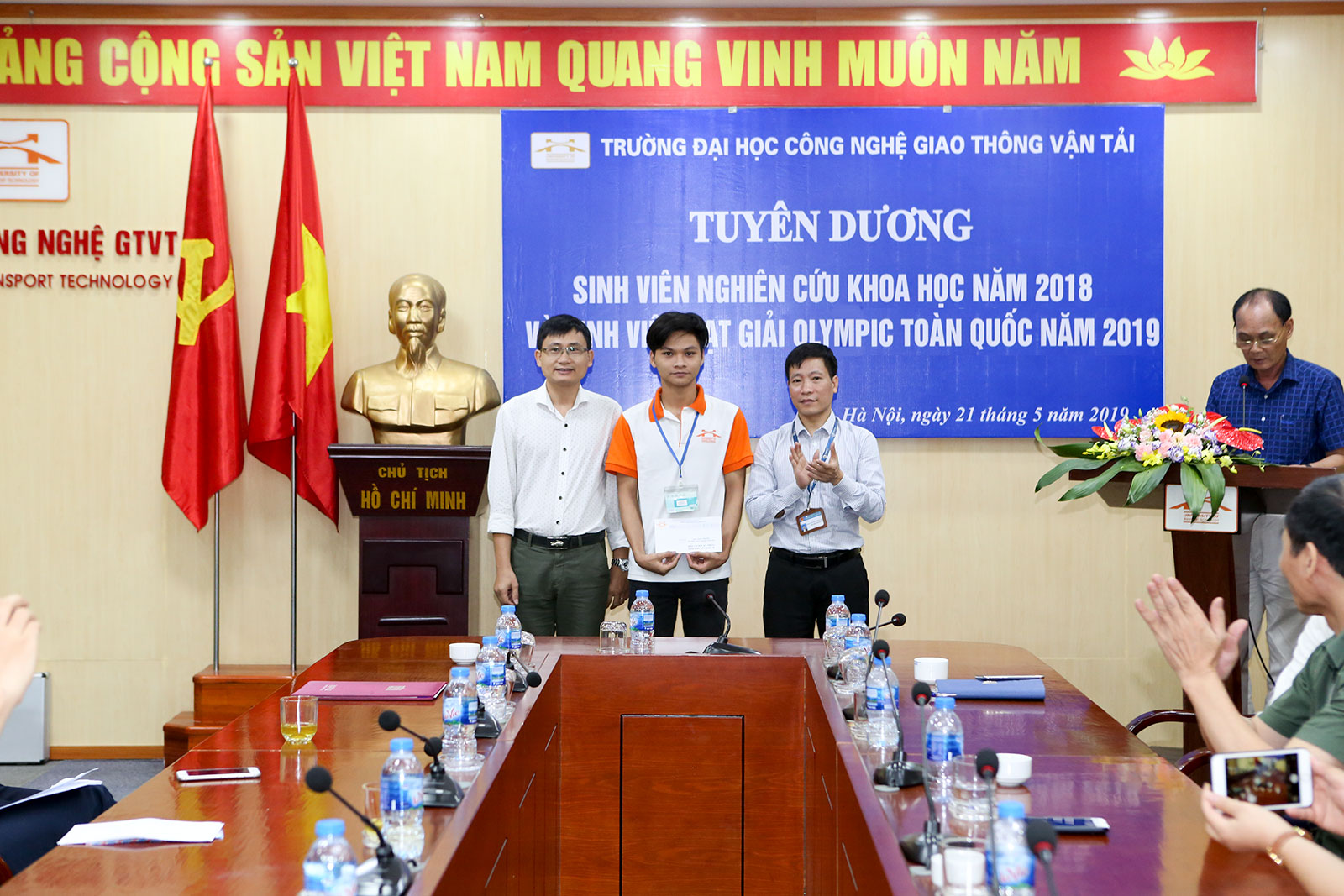 Ngày 21/5/2019, tại phòng họp trực tuyến 2 cơ sở đào tạo Vĩnh Phúc - Hà Nội, Nhà trường tổ chức Lễ tuyên dương sinh viên đạt giải trong các kỳ thi Olympic toán học toàn quốc năm 2019 tại Nha Trang, Olympic Cơ học toàn quốc năm 2019 tại Hà Nội và sinh viên tham gia nghiên cứu khoa học năm học 2018-2019.