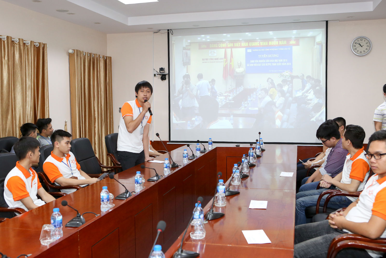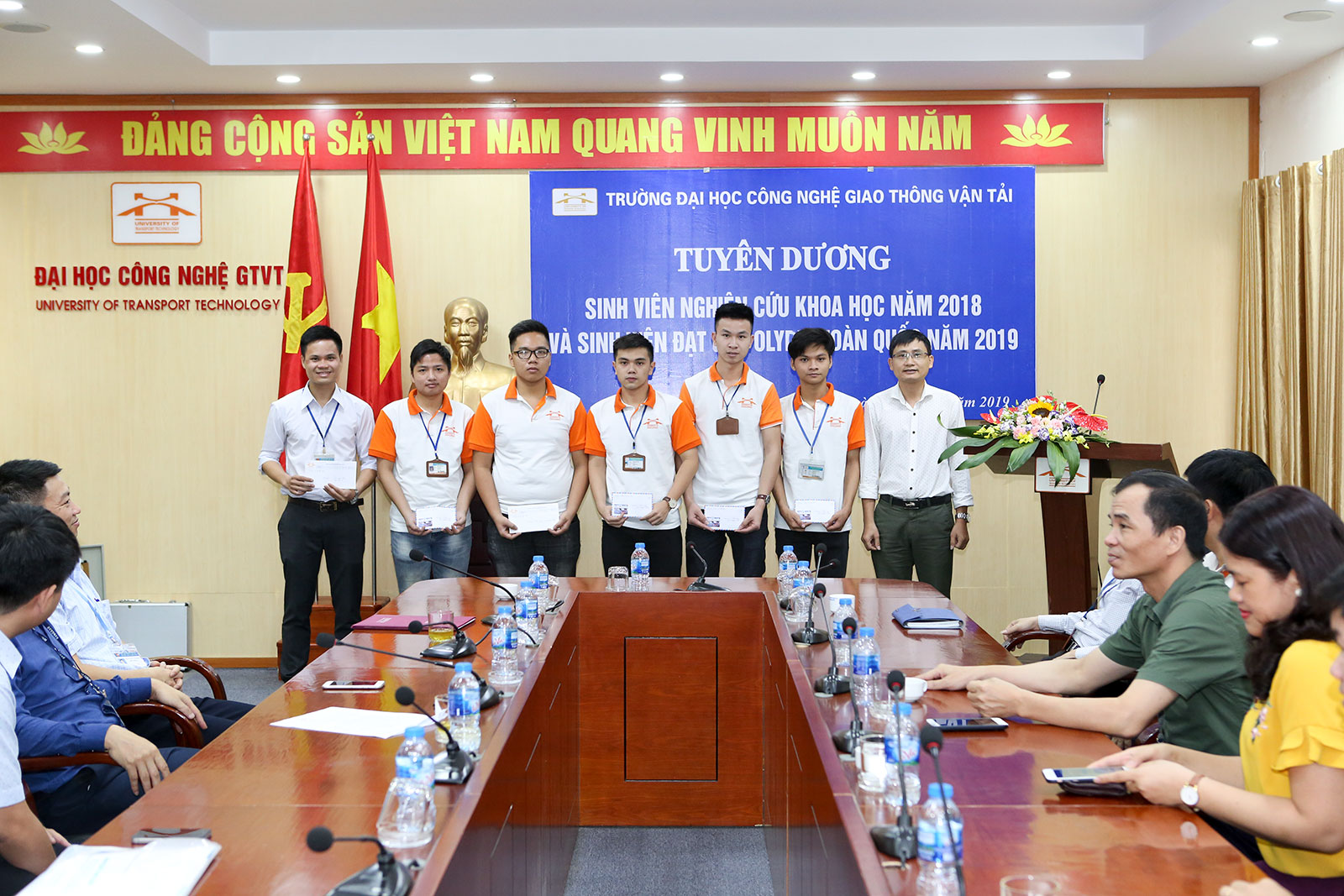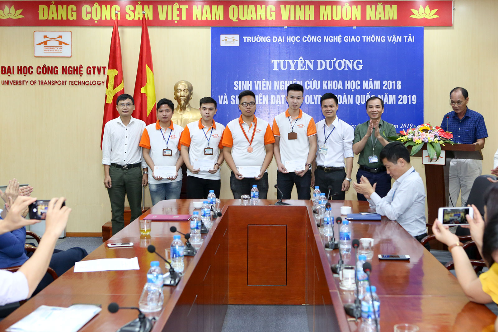 Tới dự buổi lễ tuyên dương, có PGS.TS. Đào Văn Đông - Hiệu trưởng Nhà trường; PGS.TS. Nguyễn Hoàng Long - Phó Hiệu trưởng; TS. Vương Văn Sơn - Phụ trách Cơ sở đào tạo Vĩnh Phúc; ThS. Cao Công Ánh - Bí thư Đoàn thanh niên; ThS. Công Minh Quang - Trưởng phòng Công tác sinh viên; TS. Ngô Quốc Trinh - Trưởng phòng KHCN-HTQT; TS. Ngô Thị Thanh Hương - Trưởng khoa Công trình, TS. Lê Ngọc Lý - Trưởng khoa Cơ sở kỹ thuật, TS. Trần Quốc Tuấn - Trưởng khoa Khoa học cơ bản; Các thầy cô Trưởng Bộ môn, thầy cô phụ trách đội tuyển cùng toàn thể các sinh viên, những người đã mang về vinh quang cho Nhà trường.