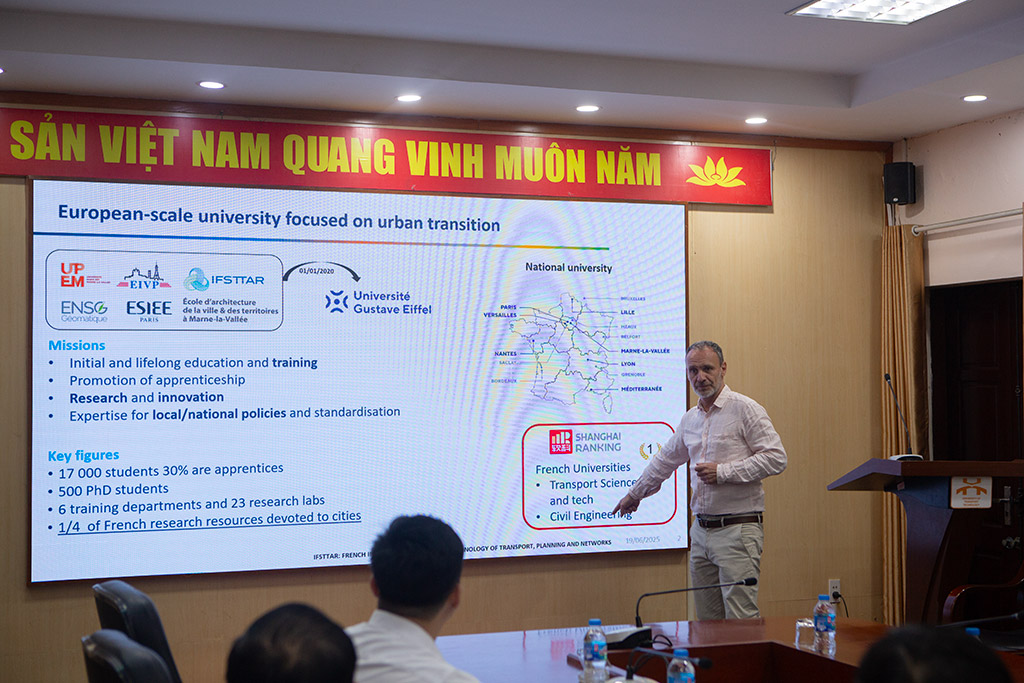 Đoàn đại biểu của Trường Đại học Gustave Eiffel (Cộng hoà Pháp) chia sẻ tại buổi làm việc