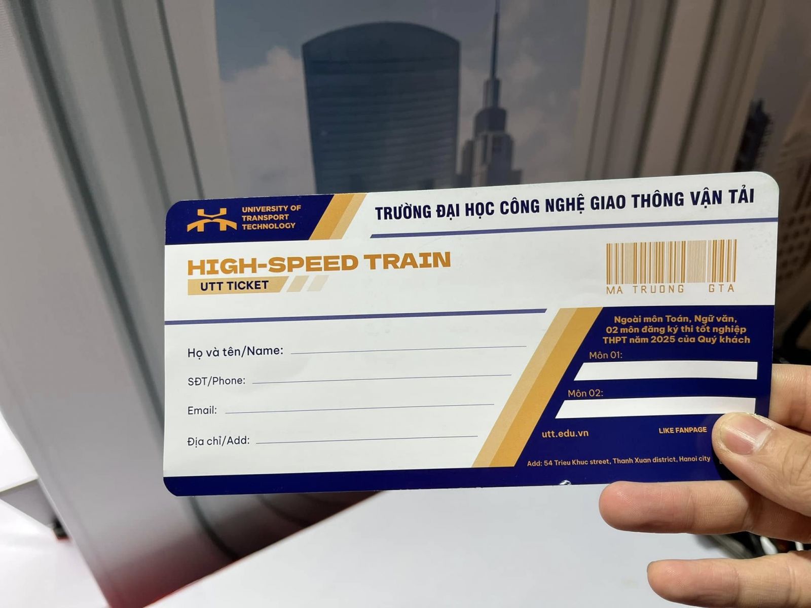 Đặc biệt, các “du khách” sẽ nhận được những tấm "vé tham quan" được thiết kế bắt mắt, tích hợp thông tin về các ngành đào tạo của trường. Điều này không chỉ giúp học sinh dễ dàng tìm hiểu về các lựa chọn học tập mà còn tạo ấn tượng thú vị, thể hiện sự đổi mới trong công tác tư vấn tuyển sinh.